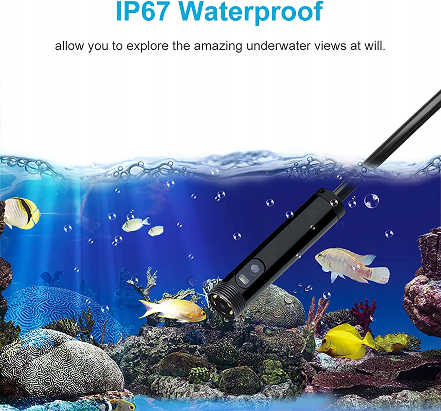 Подвійний об’єктив і подвійний дисплей зображення Цей бороскоп може перемикати передню та бічні камери, щоб побачити ситуацію під іншим кутом. 2,0-мегапіксельна HD-бороскопічна інспекційна камера пропонує чудовий досвід зйомки чіткої високої чіткості з близької відстані у форматі AVI та зображення у форматі JPG із регульованою роздільною здатністю 640x480, 1280x720 та 1920 1080. Водонепроникність IP67 та 8 світлодіодів із регулюванням яскравості З 8 регульованими світлодіодами та тонким водонепроникним екраном зонд, цей ендоскоп з підсвічуванням, підходить для різних типів середовищ, наприклад, слабо освітлених або темних місць, вологих або вологих приміщень тощо. Просте з’єднання WiFi. Завантажте та встановіть сумісну програму на свій пристрій. Вам не потрібен додатковий адаптер або кабель, просто підключіть наш ендоскоп до свого смартфону через WiFi. Потім запустіть програму, щоб почати перевірку. Бездротовий ендоскоп Ця камера ендоскопа оснащена гнучким напівжорстким кабелем, який забезпечує легкий доступ до темних і тісних місць для неруйнівного контролю труб, механічного обладнання, технічного обслуговування автомобіля, нагару, циліндрів двигуна та іншого обладнання.