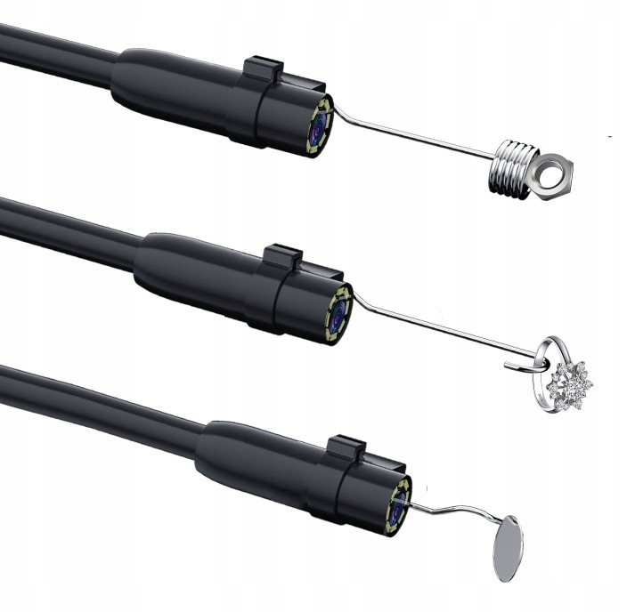 жорсткий, але легко підданий формуванню кабелю, дозволяє згинати ендоскоп під будь -яким кутом. Завдяки цьому камеру можна легко представити навіть для вузьких труб або проводів і високих, жорстких -дорічних місць. Подібне.