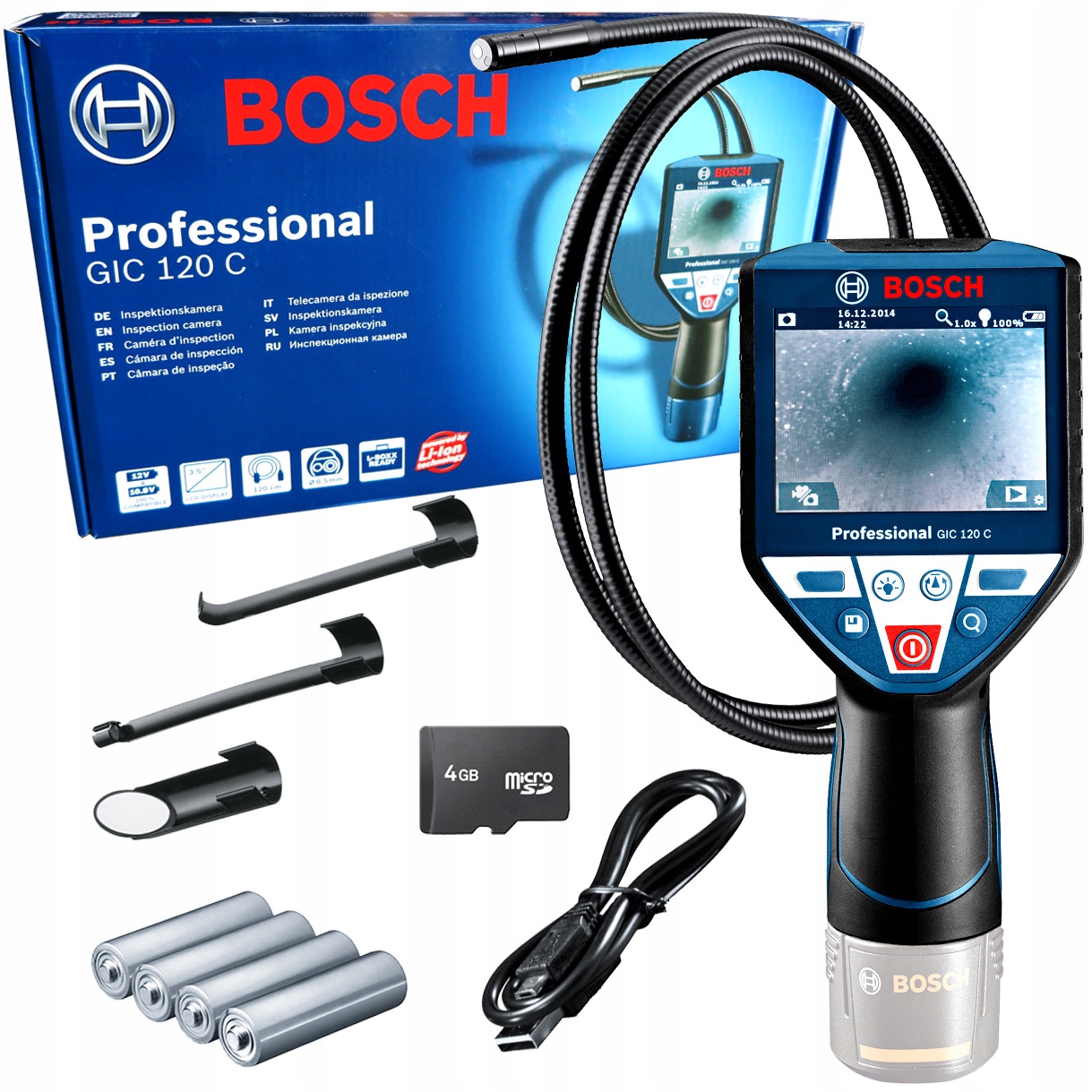 Зручна інспекційна камера GIC 120 C BOSCH із гнучкою рукояткою 120 см, яка дозволяє дістатися до важкодоступних місць, наприклад, прихованих частин двигуна, каналізаційних систем за стіною тощо. Завдяки універсальності, пристрій ідеально підходить для будь-якої професії, яка має справу з важкодоступними місцями (механіки, ревізори, сантехніки, монтажники сантехніки, опалення та вентиляції)