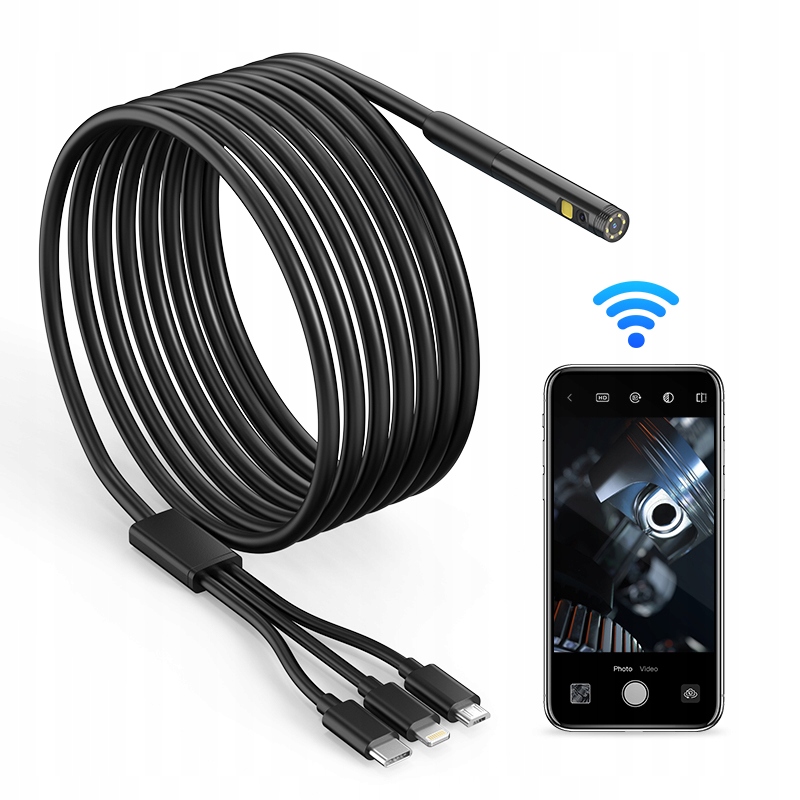 KAMERA INSPEKCYJNA WARSZTATOWA ENDOSKOP WIFI iOS USB-C ANDROID 2MPx DUAL