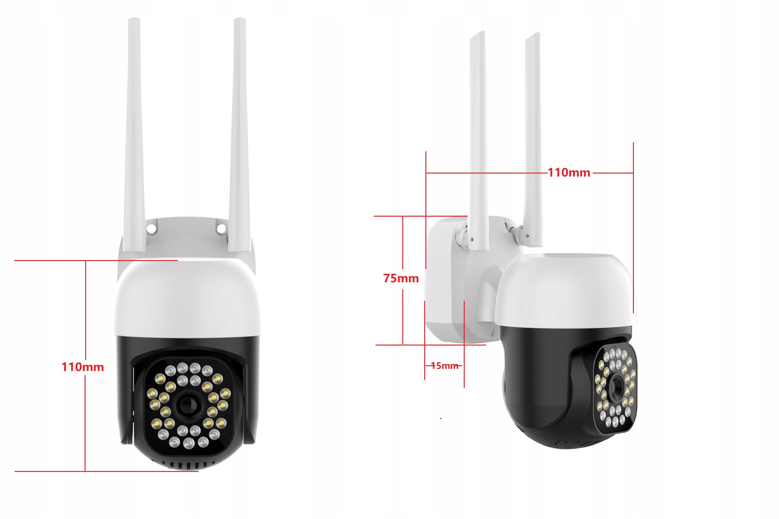Камера базується на сенсорі CMOS високого класу, який забезпечує чітке зображення та високу роздільну здатність 4 мегапікселіві зі світлодіодним та ІЧ-підсвічуваннямзабезпечує освітлення в повна темрява до 25 метрів залежно від місцевості та погодних умов. Камера також оснащена об'єктивом 3,6 мм.