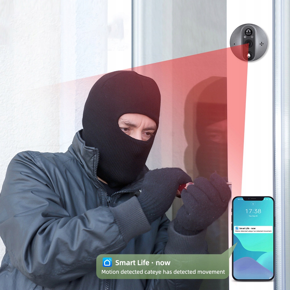 【Tuya Smart 4.3-дюймовий РК-цифровий камера в дверному дзеркалі CAT 3MP 1080P】