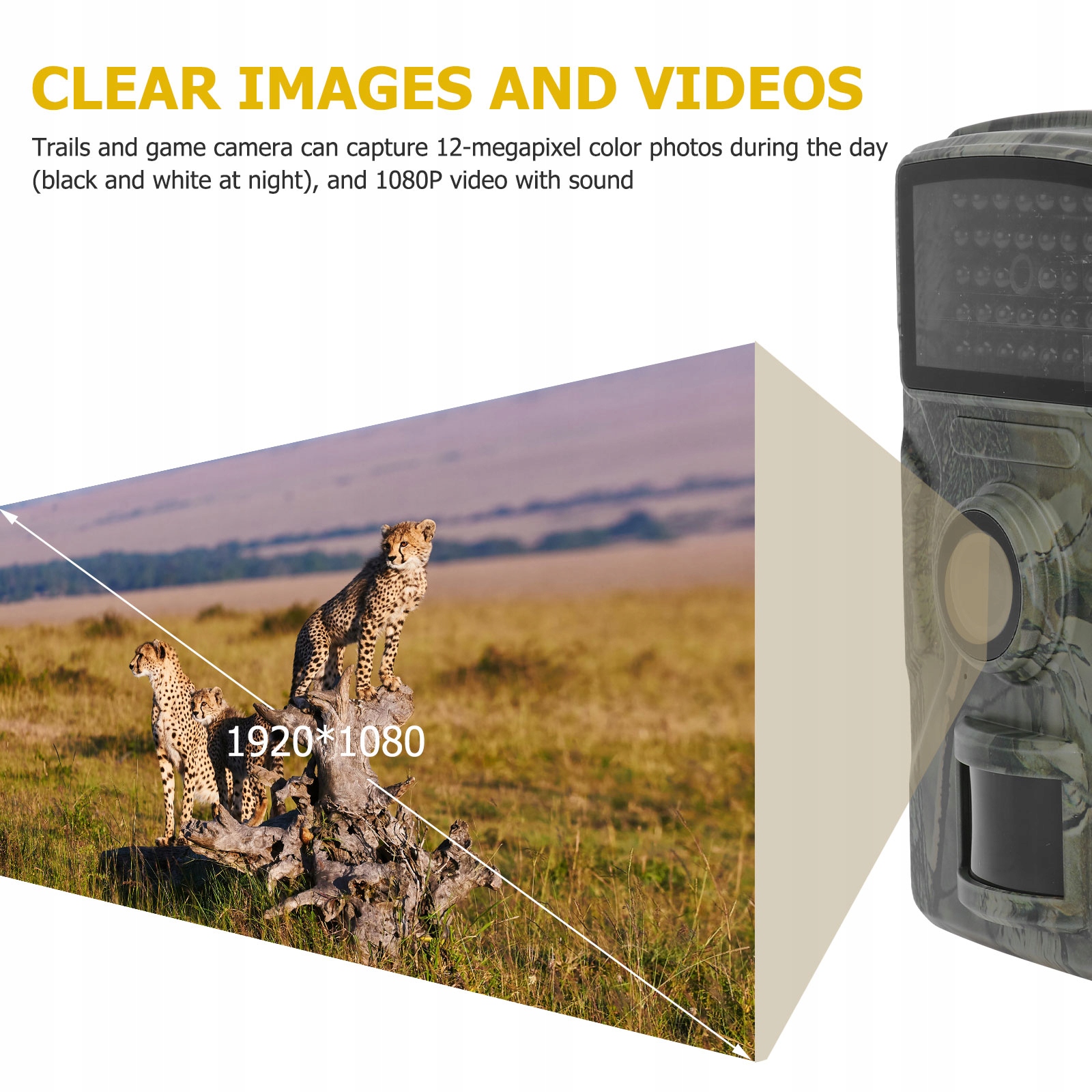✅ Чіткі зображення та відео: Камера для стеження та гри може записувати 12-мегапіксельні кольорові фотографії вдень (чорно-білі вночі) та відео 1080P зі звуком.