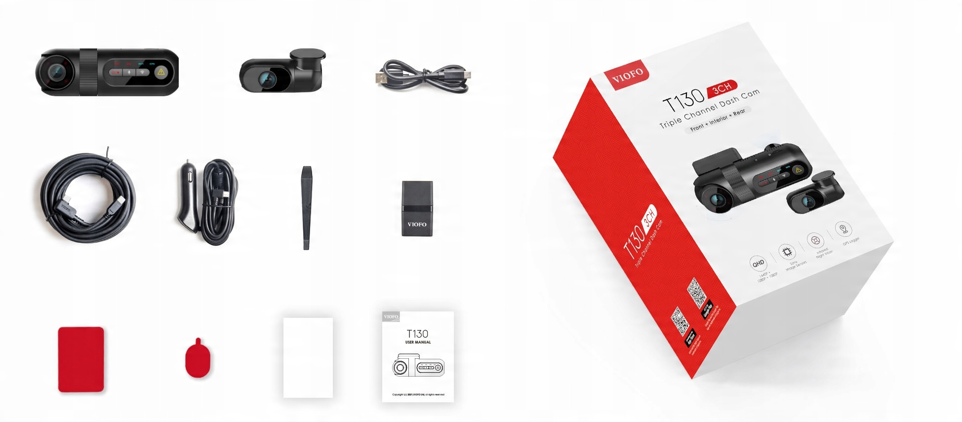 Viofo T130 має функцію запису спереду (140°), запису салону (165°) і одночасного запису ззаду (165°). Запис виконується у форматі 2560x1440p QHD (30 кадрів/с) спереду, 1920x1080p FHD (30 кадрів/с) зсередини та 1920x1080p FHD (30 кадрів/с) у задній частині автомобіля!