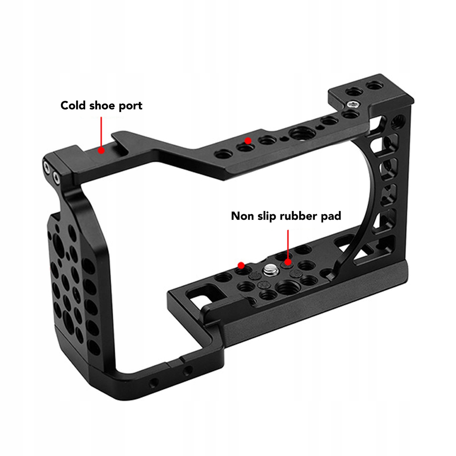 - Інтерфейс клітки: кріплення холодного взуття, 1/4 дюймовий гвинтовий отвір, гвинт, що відкриваються 3/8 дюйма, 3/8 дюйма, 3/8 дюйма місця розташування