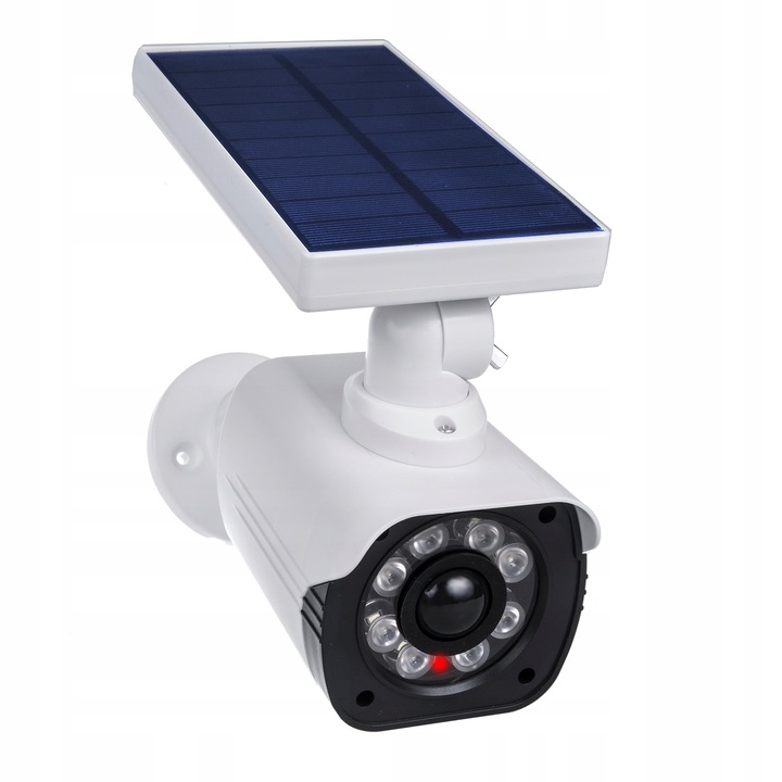 Майк-камери є найефективнішими у своїй роботі. червоний світлодіод (завдяки діоду манекен більш помітний, особливо вночі, в підвалах, гаражах, складах). Наш манекен також має сонячну панель, яка живить вбудований акумулятор, забезпечуючи роботу вночі. Це дуже практичне рішення, оскільки вам не потрібно турбуватися про заміну батарей, коли вони розряджаються.
