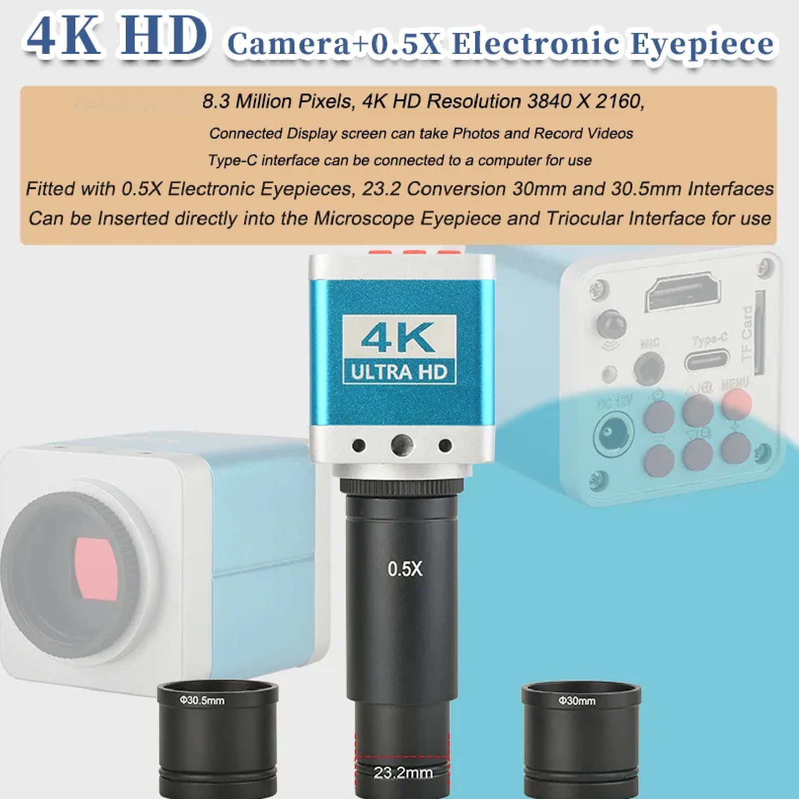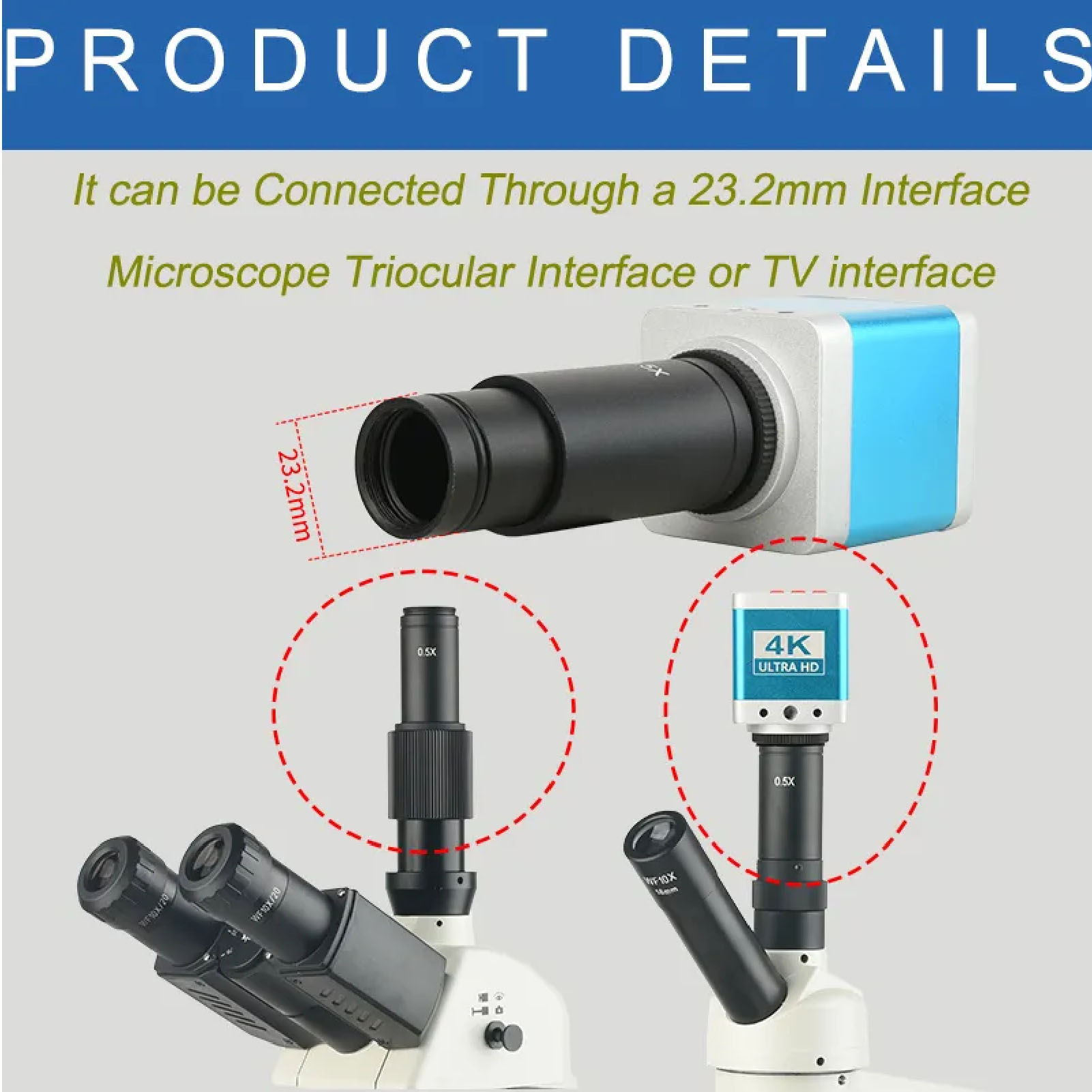Електронне окуляри: Ім'я: 0,5x C кріплення адаптера лінзи, Біологічний мікроскоп, Застосовується: 23,2 мм до 30 мм і 30,5 мм
