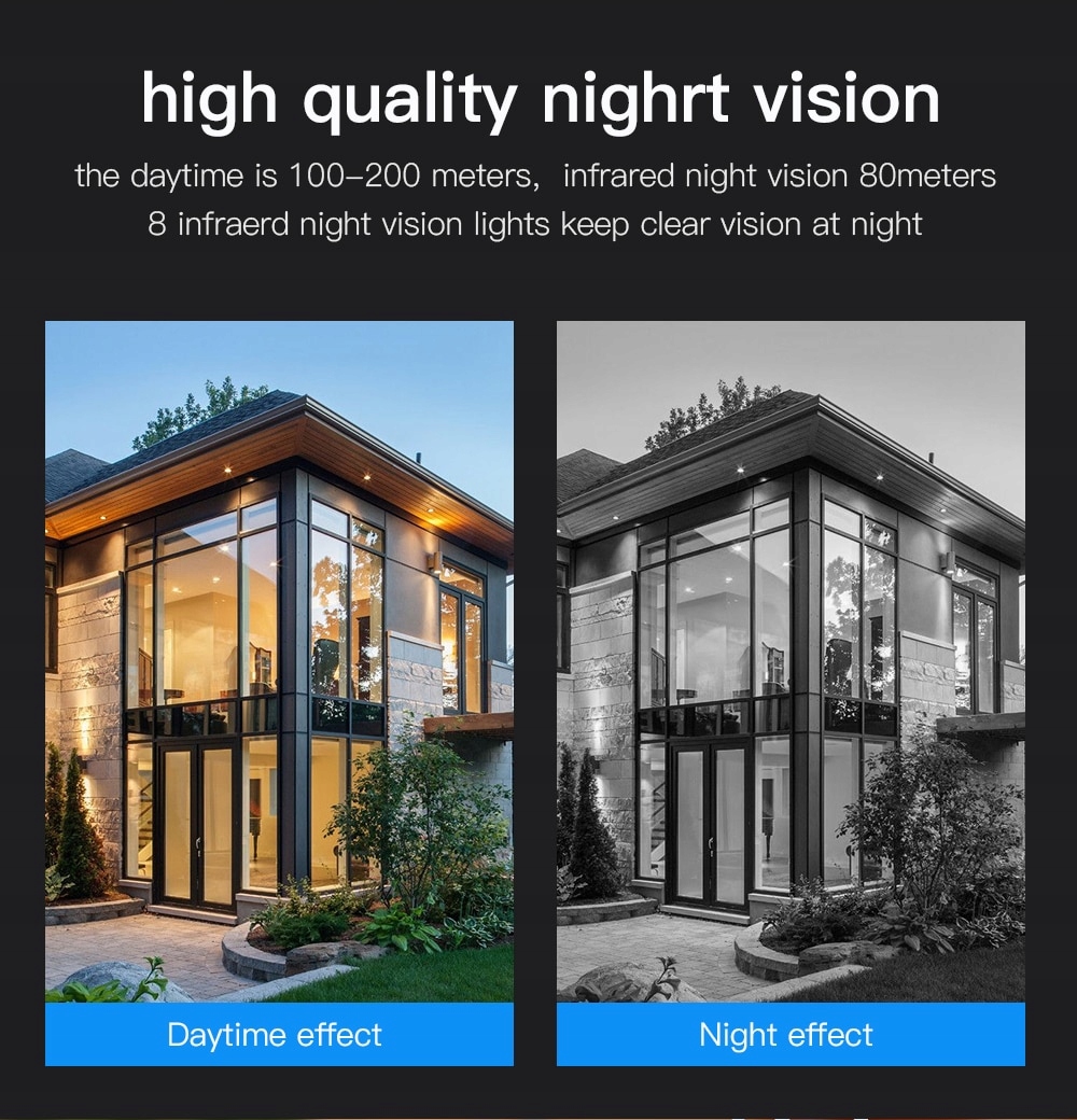 - Вбудований -in PIR PIR MOWE DECTOR 140 ° (Виявлення руху до 20 метрів) ІЧ-супердержавна висока потужність (чорна)