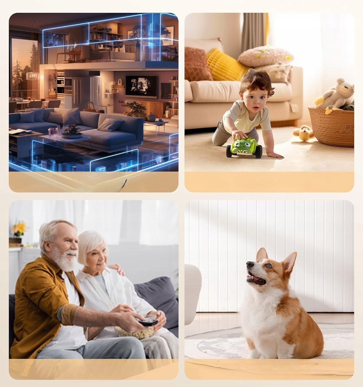 Камера обертається горизонтально на 355° та вертикально на 140°, дозволяючи контролювати всю кімнату без мертвих зон — ідеально підходить для дитячої кімнати, вітальні чи офісу.