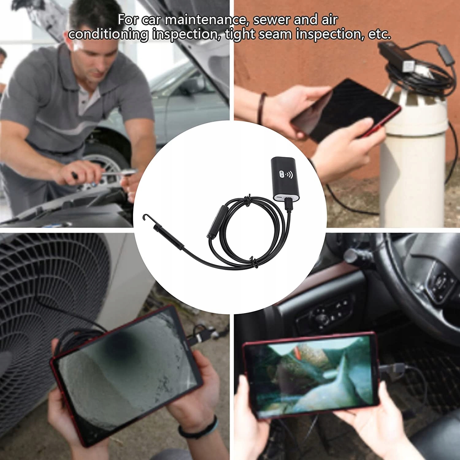 Телефонний ендоскоп Wi-Fi. Ендоскоп оснащений Wi-Fi і сумісний з кількома мобільними телефонами одночасно. Регульований регулятор яскравості для налаштування яскравості світлодіодів, покращуючи видимість у темних місцях, створюючи чітке та яскраве зображення, адаптоване до різних середовищ. Висока роздільна здатність зображення Об’єктив високої роздільної здатності 1200P, оснащений технологією Bluray, покращує чіткість зображення. Довгий термін служби, вбудований акумулятор на 800 мАг, дуже тривалий час очікування, робота завдяки зарядці 5 В, підтримка камери та мобільного телефону для запису відео. Перевірка трубопроводу. Він підходить для перевірки різних місць, які важко побачити неозброєним оком, а переданий відеосигнал можна легко відобразити.