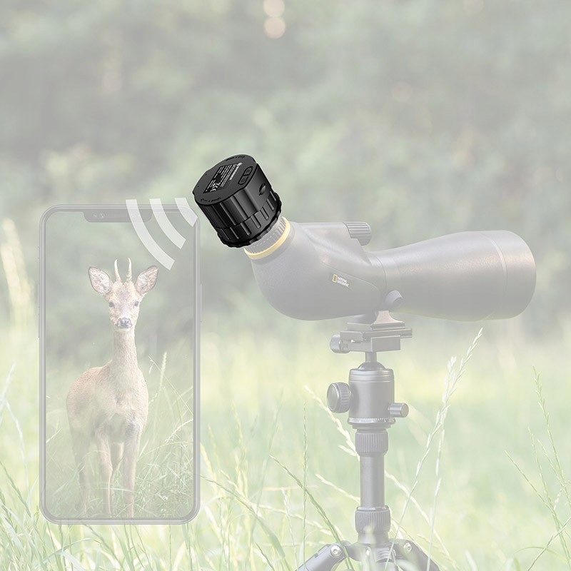 За допомогою камери-окуляра Bresser WIFI ви можете легко захопити будь-яке захоплююче зображення, побачене в телескоп, підзорну трубу, бінокль або мікроскоп. Просто наведіть його на окуляр будь-якого оптичного приладу, прикріпіть до окуляра та підключіть до свого мобільного пристрою, щоб миттєво помилуватися живим зображенням на дисплеї свого смартфона чи планшета.