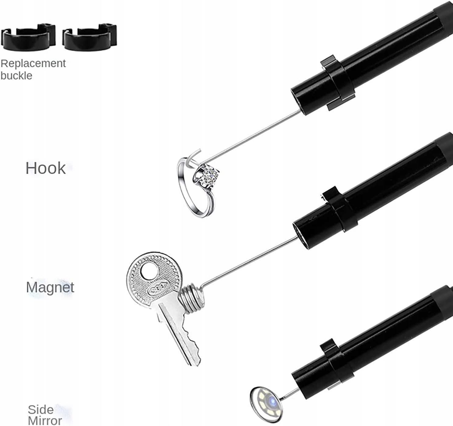 6 1 регульованих світлодіодів Камера добре працює з 6 регульованими світлодіодами на зонді навіть у темряві або далеко від об’єкта. 24-дюймовий кольоровий РК-екран і суцільний скляний екран Інспекція оснащена 24-дюймовим кольоровим РК-екраном, не потрібне підключення Bluetooth або WiFi, немає нестабільності сигналу або збоїв програмного забезпечення. Він виготовлений з міцного скла і забезпечує захист від подряпин і подряпин. Вбудована батарея 2600 мАг Вбудована батарея 2600 мАг працює до 235 годин у повністю зарядженому стані IP67 Водонепроникність і АКСЕСУАРИ Завдяки водонепроникній камері оглядової камери IP67 ви можете використовувати ендоскоп у вологих, вологих і навіть підводних роботах, таких як перевірка каналізації та трубопроводів. Широкий спектр застосувань. Наша камера для оглядової труби є ідеальною камерою для огляду з бороскопом для механічного контролю ремонту труб і інспекції каналізації. Аксесуари гачки магніти бічні дзеркала захисні ковпачки.