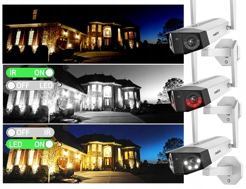 Вбудовані ІЧ-світлодіоди ІЧ-прожектори та світлодіодні прожектори дозволяють чітко бачити вночі навіть у кольорі, забезпечуючи безпеку після заходу сонця. На прикладному рівні ми можемо вибрати метод підсвічування: