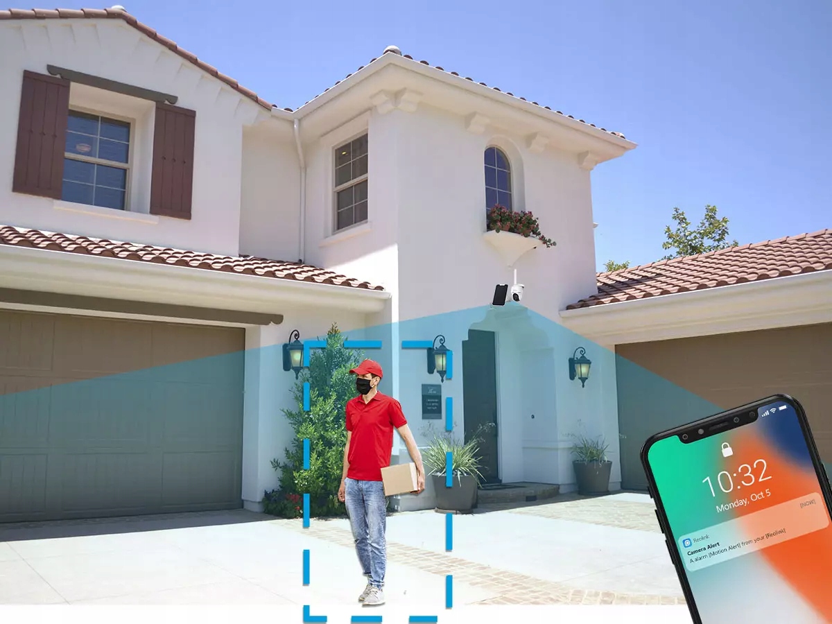 Отримуйте сповіщення на свій телефон або електронну пошту, коли підозріла особа або автомобіль є ширяє навколо вашого будинку. Камера відмінно справляється з помилковими тривогами, спричиненими, наприклад, комахами або хитанням дерев.