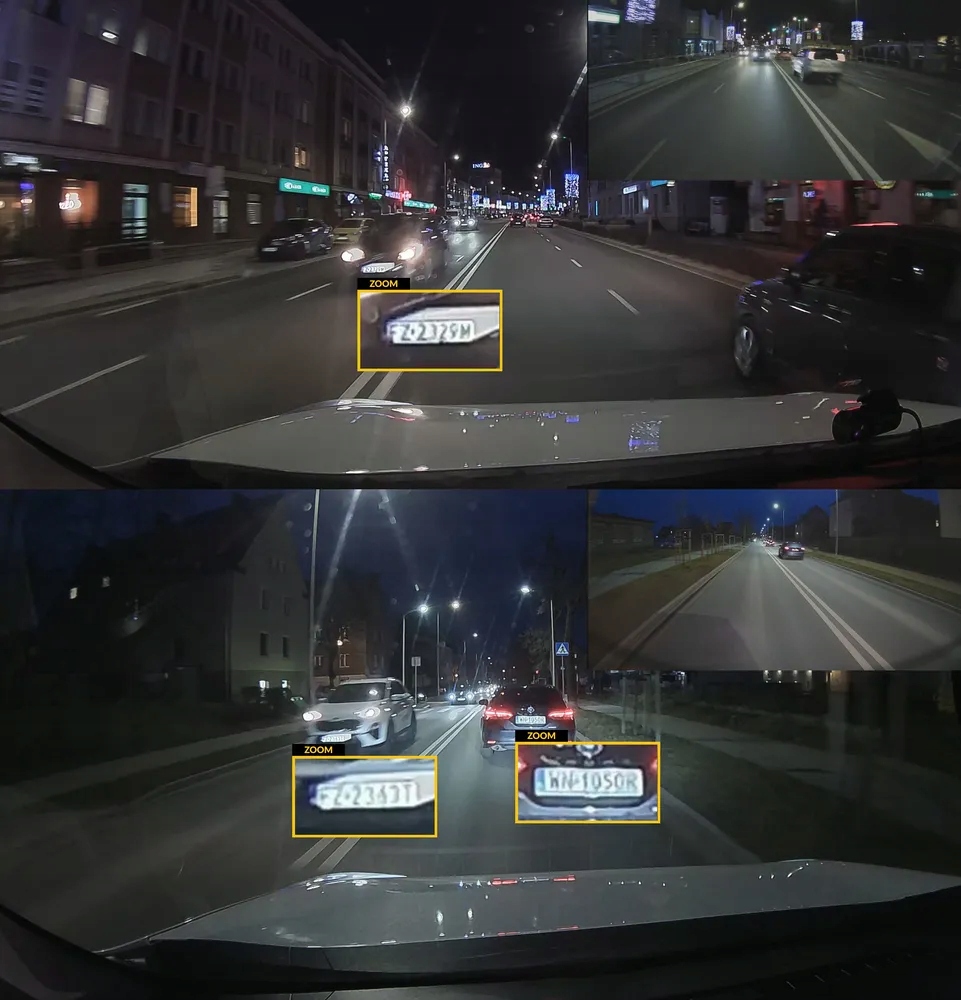 Автомобільна камера FineVu GX35 записує зображення в роздільній здатності 2560x1440p як з переднього модуля, завдяки висококласним перетворювачам Sony STARVIS 2, так і програмне забезпечення камери пропонує ідеально працюючий режим HDR, який покращує читаність у найскладніших умовах освітлення. Іноді ми навіть можемо отримати розбірливі номерні знаки зустрічних транспортних засобів вночі!
