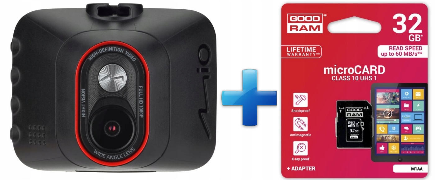 Kamera samochodowa Mio MiVue C312 + GOODRAM KARTA MICROSD 32 GB MICRO + ADAPTER SD
