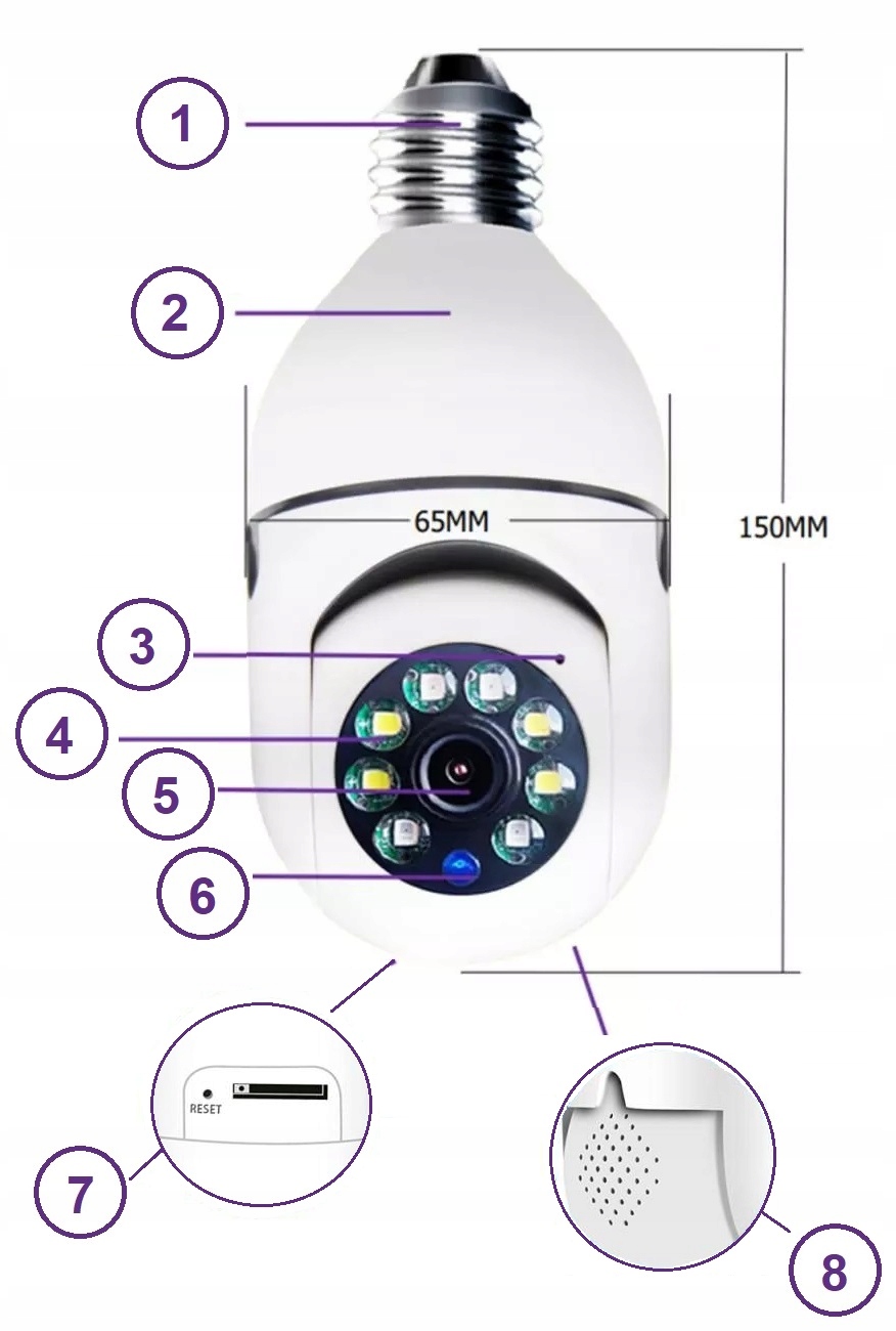 КАМЕРА ШВИДКОСТІ E27 WIFI IP ПОВОРОТНА ЛАМПА