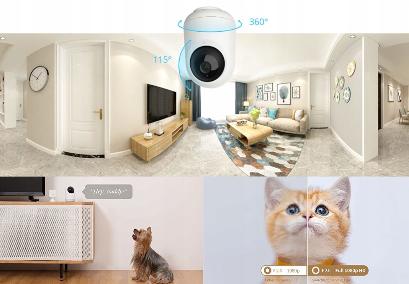 - SwitchBot Pan/Tilt Cam — це інтелектуальна внутрішня камера, яка дає змогу чітко контролювати ваш дім 24 години на добу та відображає цілодобове відео. Камера легко, в широкому діапазоні, обертається зліва направо і нахиляється вгору і вниз, таким чином дозволяючи точне спостереження за всією кімнатою, в роздільній здатності Full HD 1080p. Також є можливість встановити 6 найважливіших, ключових фокусних точок, що значно прискорює перенаправлення та спостереження за місцями, які вам найбільше подобаються.