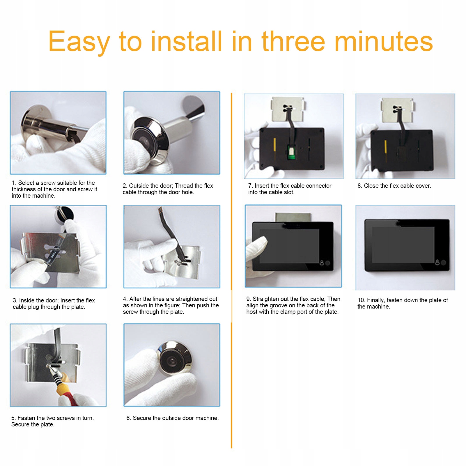 1. З дисплеєм: камера з 4.3 -дюймами HD -козирок та HD -дисплеєм забезпечує чітке зображення та зручний нагляд. Легко встановити, діаметр завантажувальної двері, що відкриваються 15-22 мм, товщина навантажувальних дверей 30-110 мм. 4 Ви можете сфотографувати та записати, щоб зафіксувати всі деталі.