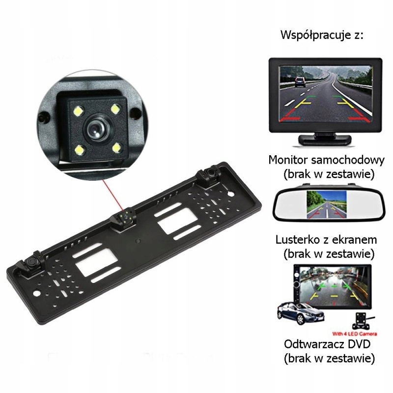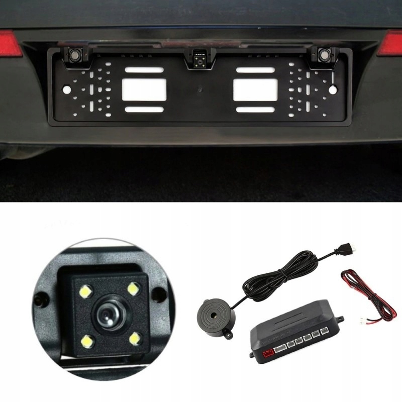 Пристрій підключається до будь-якого монітора з відеовходом. Камера автоматично вмикається при включенні задньої передачі. Камера має невеликі розміри і ніяк не впливає на зовнішній вигляд рамки номерного знака. Він виготовлений з дуже якісних матеріалів, що означає його надійність і довговічність. Камера і датчики паркування повністю водонепроникні та ударостійкі.