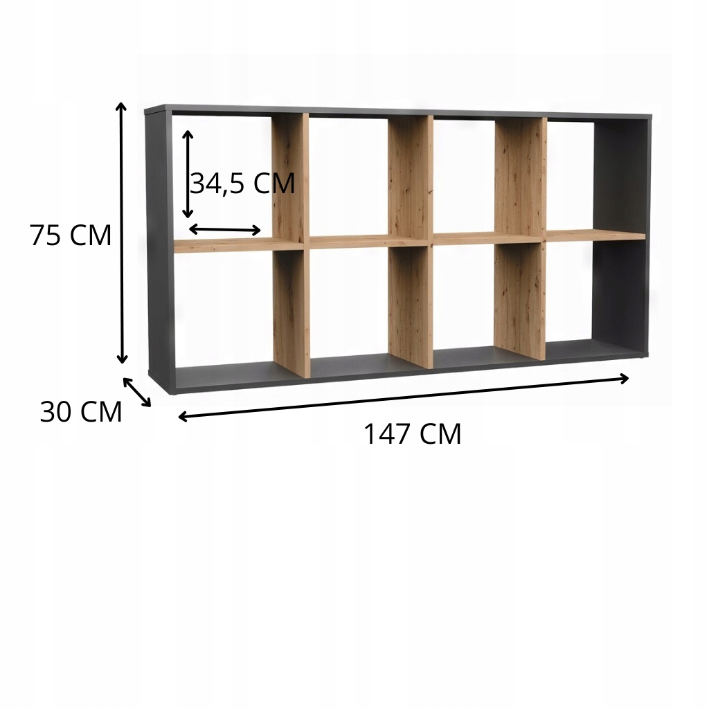 Поєднання антрациту з дубовим ремісником - це стильне поєднання, яке чудово виглядає як у вітальні, офісі, так і в кімнаті дитини. Ваша книжкова шафа не тільки вмістить усе важливе, але й буде прикрасою кімнати.