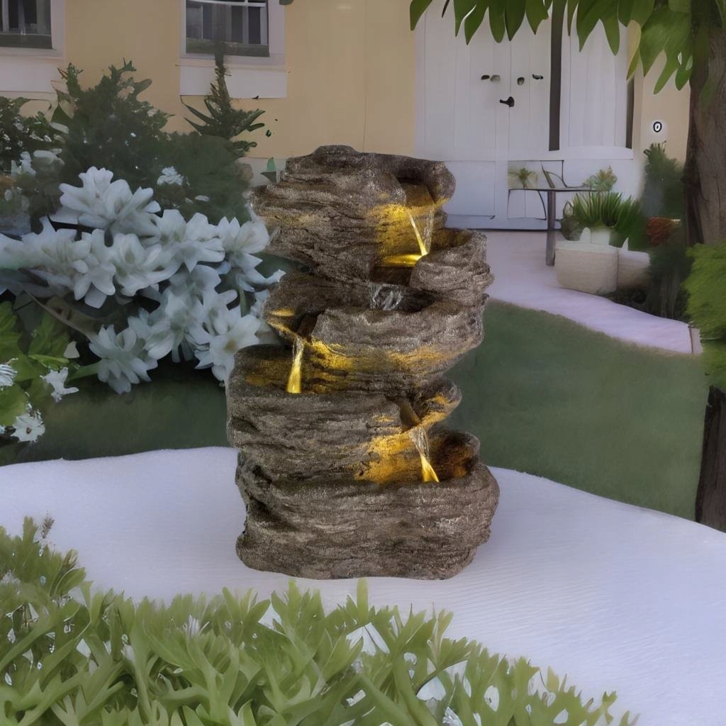 Візуально фонтан виглядає ніби зі справжнього каменю - а завдяки світлодіодному підсвічуванню ви отримуєте щось унікальне і ефект набагато ефектніший.