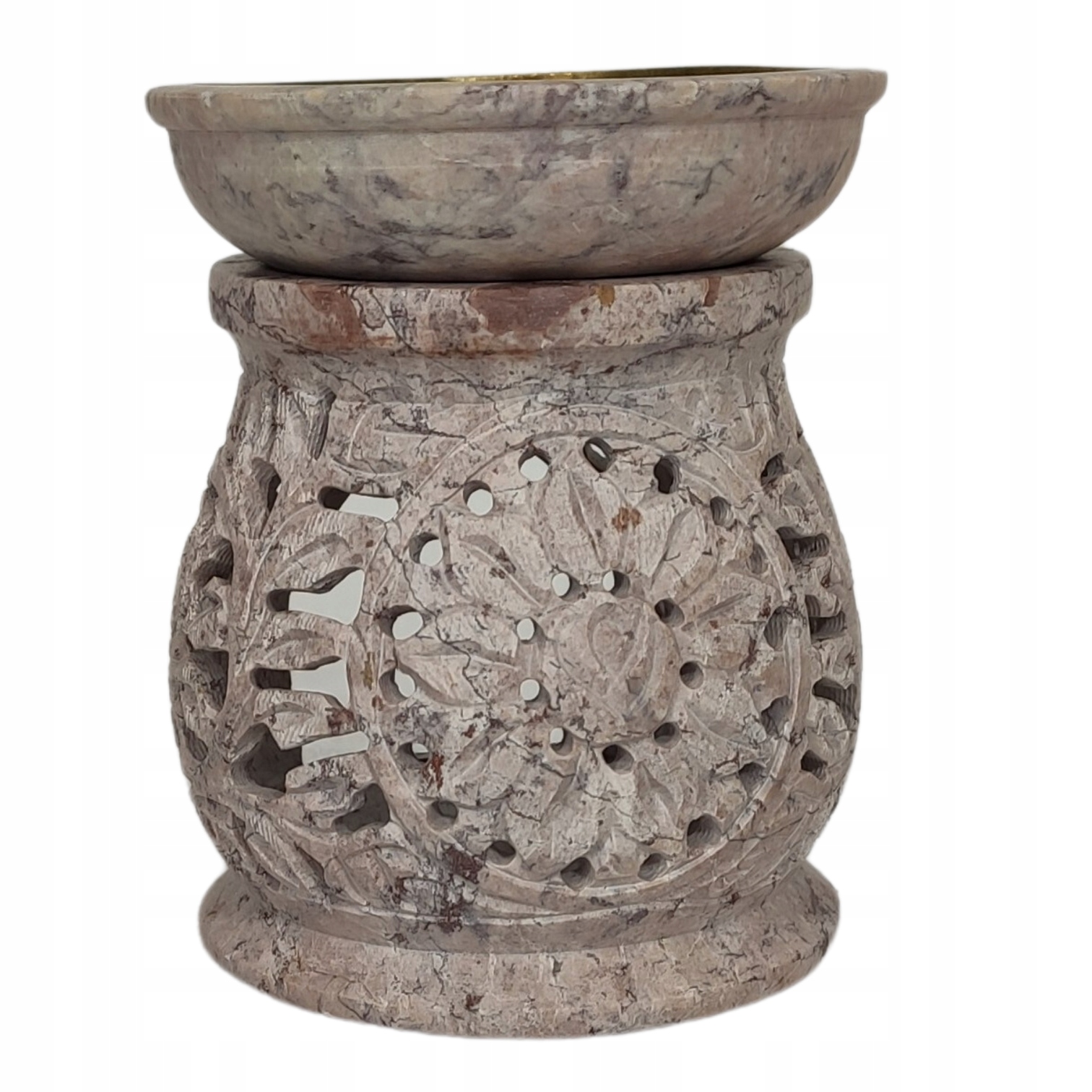 Висота: 8,5 смШирина: 6,5 смМатеріал: мильний камінь і латуньПризначення: нагрівання воску та ефірних олій
