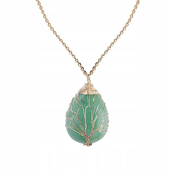 Намисто, натуральний камінь АВЕНТУРИН, обмотане дротом на ланцюжку