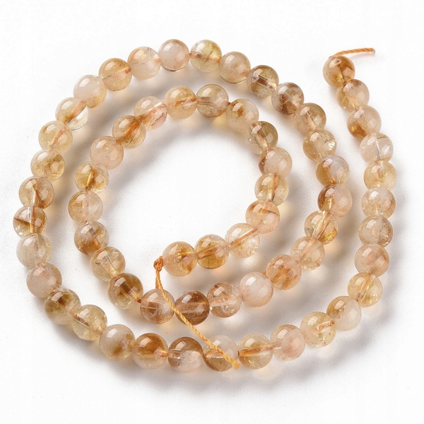 Камінь цитрин гладка кулька 6мм намистини для браслета щастя 19см