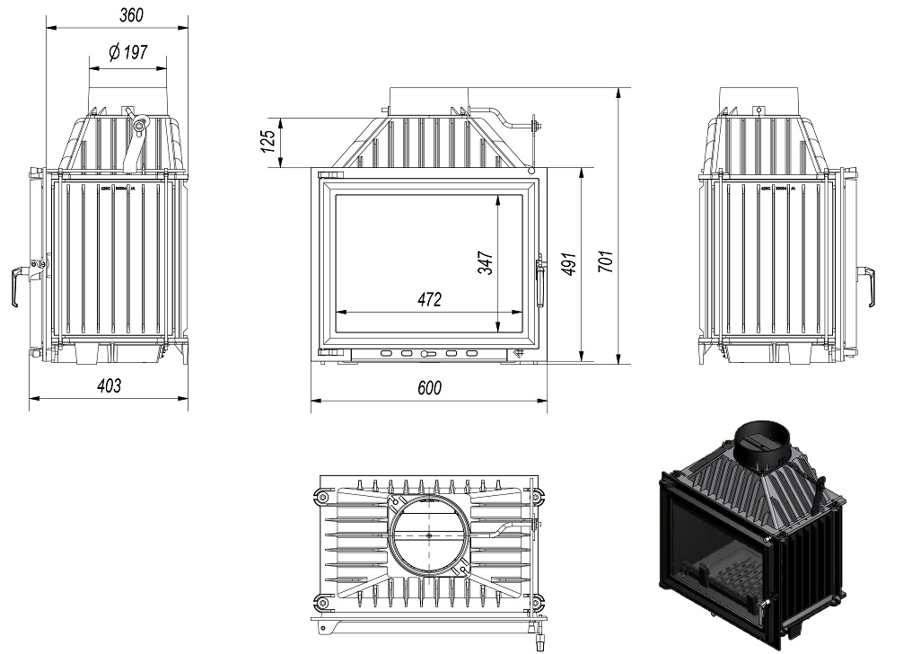 Максимальне використання тепла завдяки щільно розташованим радіаторам і стінкам топки з високоякісного чавуну товщиною 8 мм.