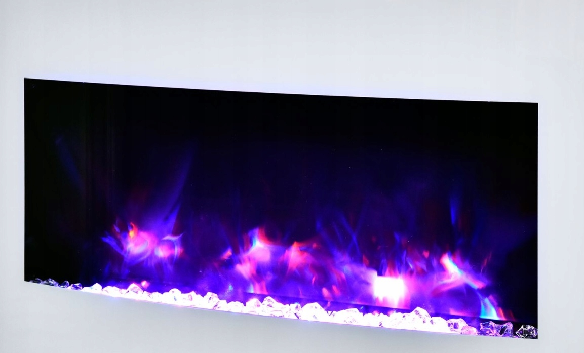 Сучасний електричний камін для настінного монтажу з реалістичним ефектом полум'я.