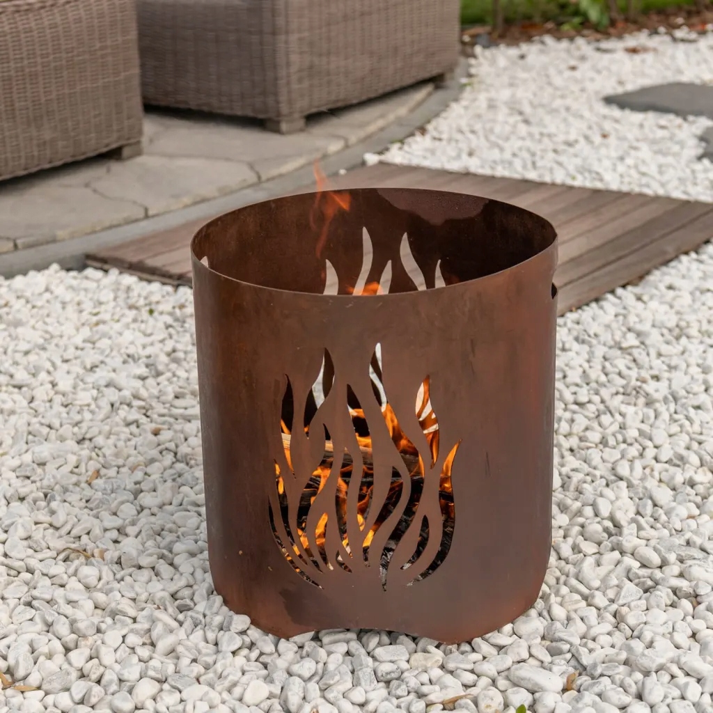 Міцний сталевий камін Kiruna від RedFire з іржавим покриттям створить неповторну атмосферу у вашому саду чи терасі. Це практичний просторий садовий камін, стилізований під сталь Corten. Виразний іржавий колір і вирізи у формі полум'я надають каміну Kiruna унікальний вигляд. Що ще виділяє їх, так це те, що чаша виготовлена вручну в Єгипті. Просто розведіть вогонь і зберіться навколо вогню, щоб зігрітися. Цей прекрасний камін стане центром будь-якого саду та ідеально підходить для відпочинку з родиною та друзями. Завдяки своїй висоті та діаметру 40 см, його можна легко розмістити де завгодно та вмістити кілька шматків дерева. Модель Kiruna цільна. Завдяки цьому встановлення не є проблемою. Оксидована поверхня надає каміну індустріальний вигляд і буде привертати увагу в будь-якому саду. З часом вогнище Кіруни покриється більш природною, органічною іржею, що посилить його характер і стиль.