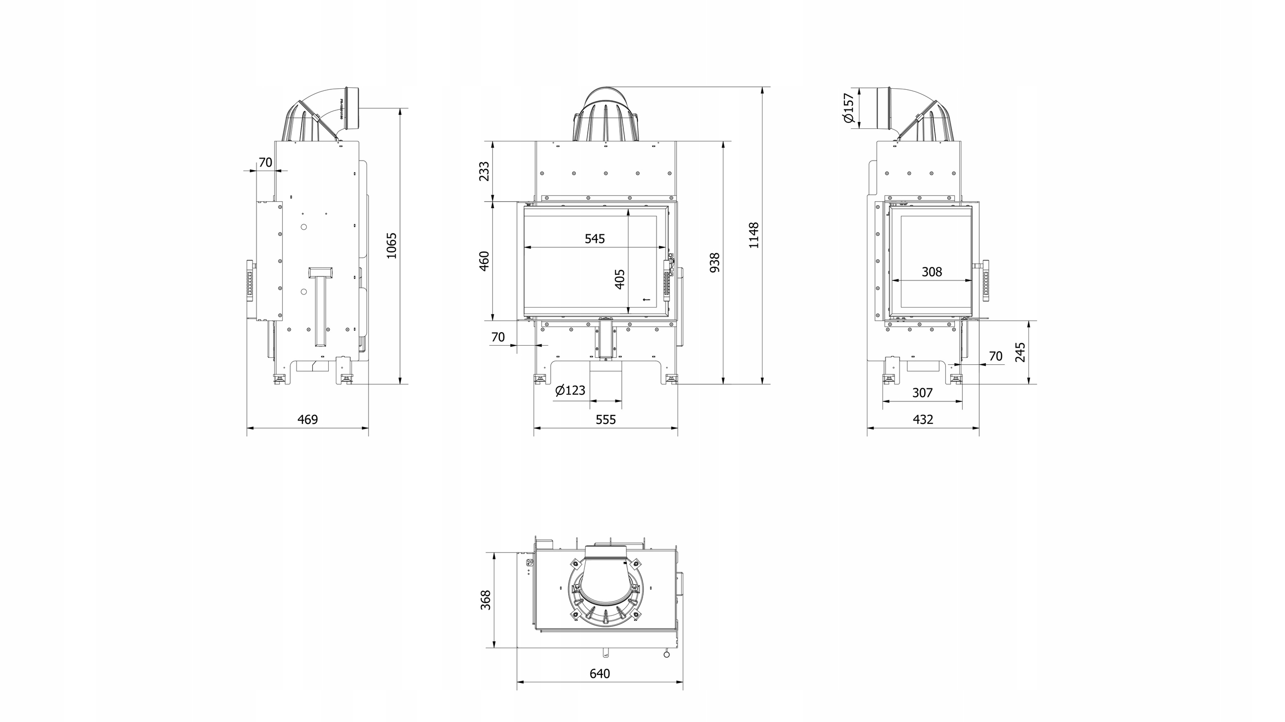 - Крім того, використовується чиста скляна система (повітряна завіса), , тобто повітря постачається безпосередньо до скла через систему каналів, розміщених з боків каміна. Таким чином кисень подається до верхньої частини камери згоряння, в якій гази, утворені в процесі спалювання деревини, що ще більше обмежує викиди шкідливості щодо атмосфери. 4