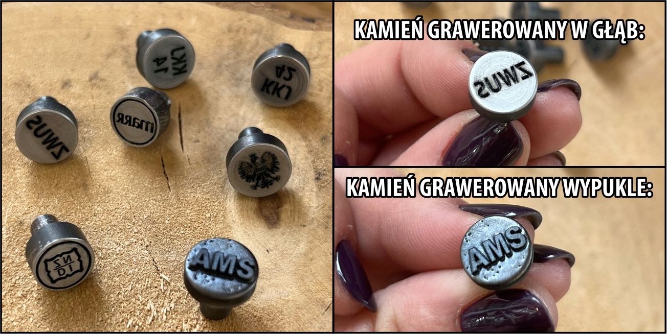 Для пластикових печаток найчастіше використовується опуклий гравірований камінь (продається на іншому аукціоні).