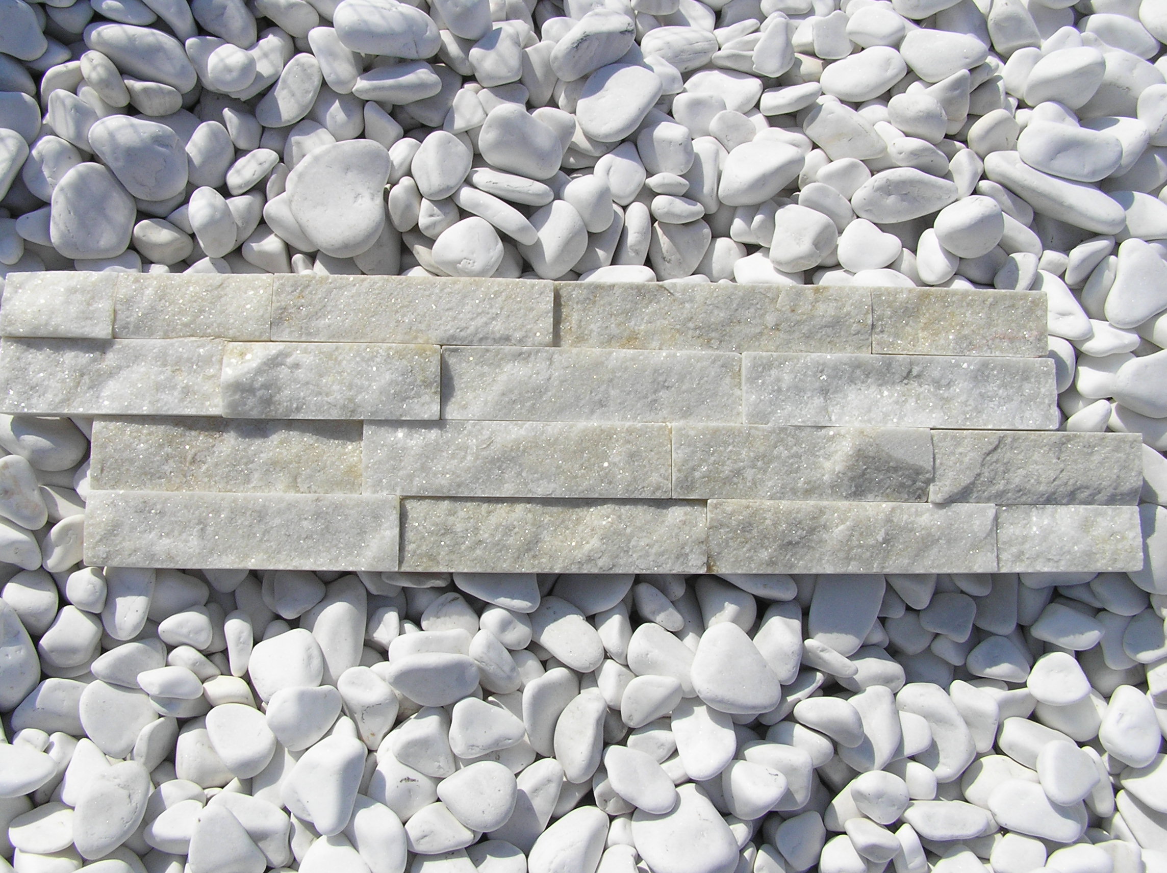 Біло-бежева декоративна кварцитова панель, глянцева - Кам'яна панель 55x15 - Symbol S 410