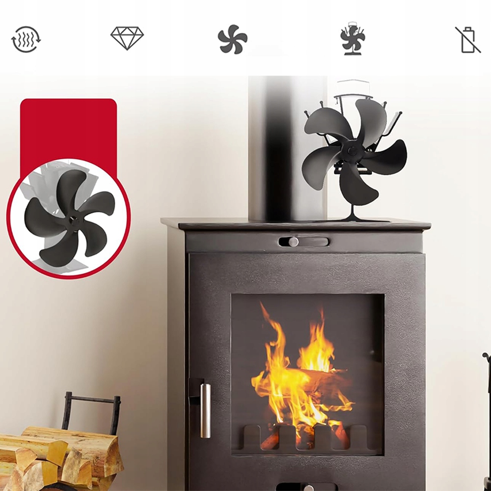 Вентилятор, що працює на теплі, розподіляє тепле повітря внаслідок спалювання деревини/вугілля або гранул. Ефективно розподіляє тепле повітря в кімнаті при 122 ~ 662 ° F.