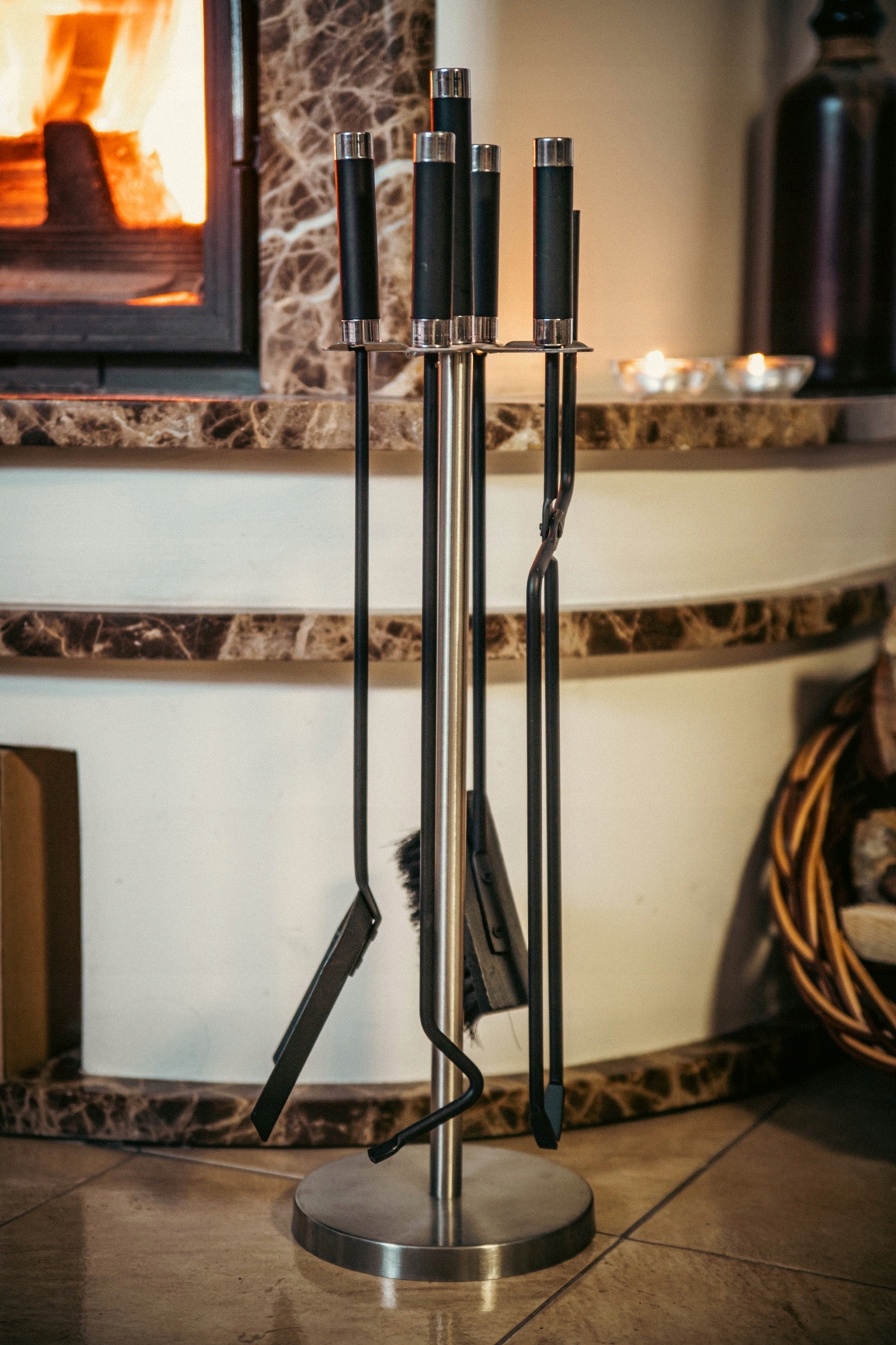 Набір Соліна - це практичні інструменти для каміна, які працюватимуть у будь -якій ситуації - від очищення золи до точного розташування деревини у вогнищі. підставка з ручкою забезпечує зручне зберігання, а плоскогубці та подряпини полегшують безпечну експлуатацію пожежі. Профілелена таємниця і Суцільна совок дозволить вам швидко та ефективно піклуватися про чистоту навколо каміна. Ціле виготовлено з чорношкірих сталі з елегантним покриттям з тонкими срібними акцентами.