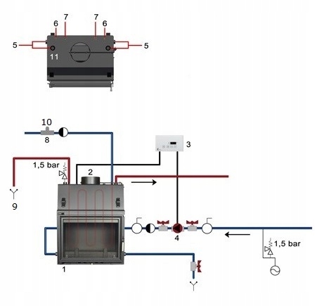 Камін з водною курткою решітки Люсі Люсі 16 кВт Ø200 Трубова основа