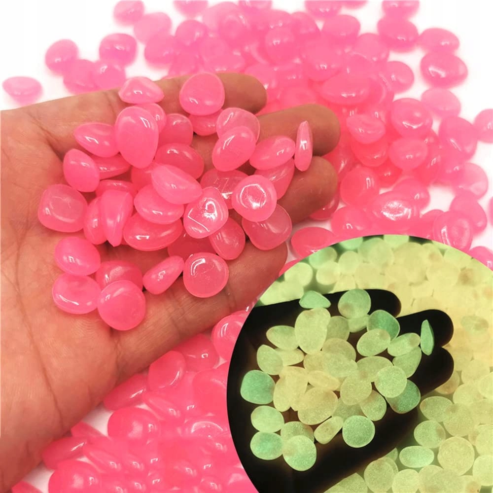 Набір Frofine зі 100 РОЖЕВИХ камінців, що світяться в темряві, флуоресцентні камінці для прикраси саду, світяться камені для акваріумів, квіткових горщиків, ваз тощо.