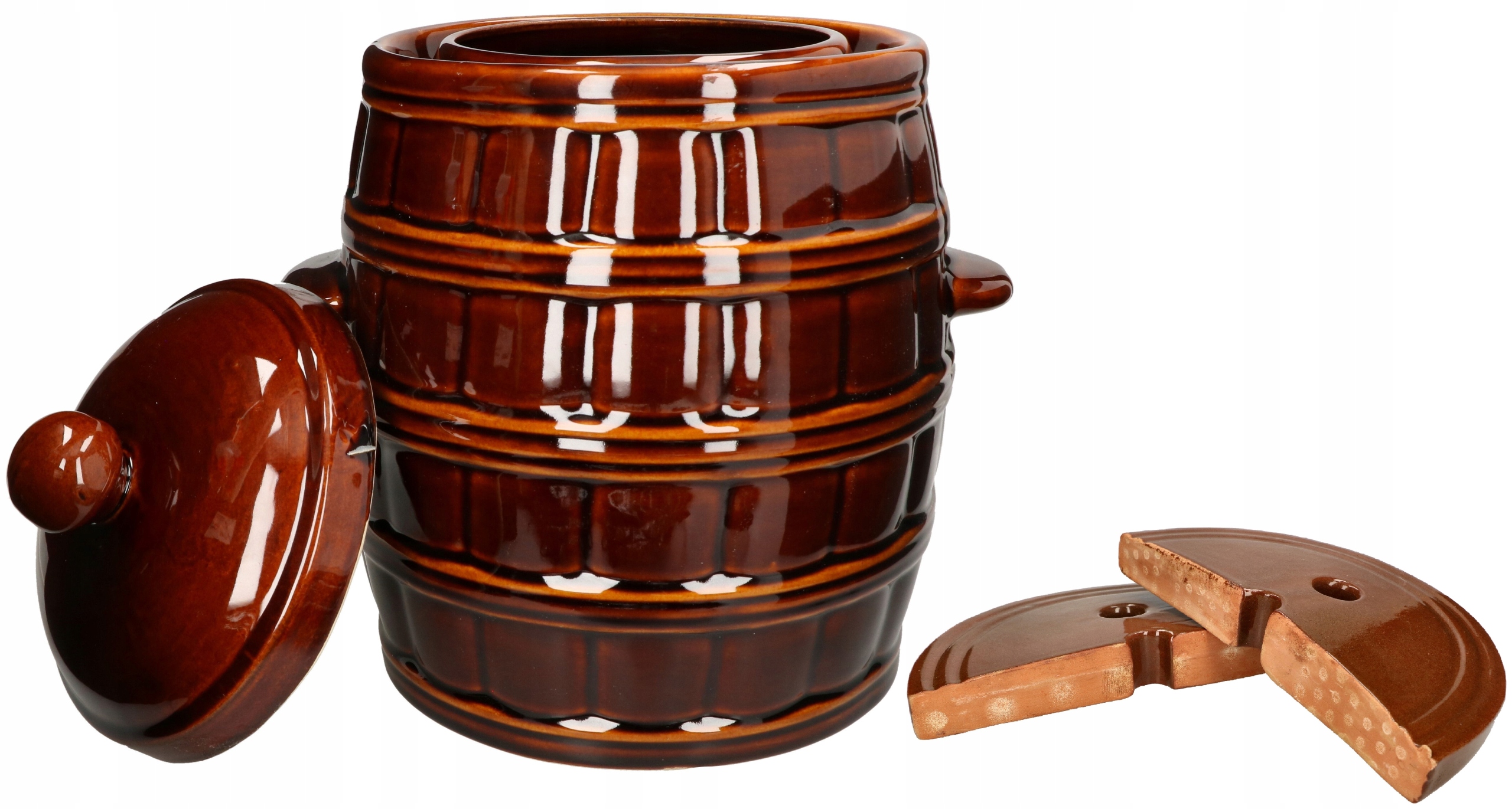 Багатофункціональна ємність, корисна на кожній кухні. Ідеально підходить для зберігання сала та солінь. Завдяки традиційному вигляду він вписується в більшість інтер’єрів не лише будинків, а й ресторанів. Керамічна бочка стійка до дії кислот, тому особливо підходить для приготування маринованих огірків, капусти, перцю, грибів та інших продуктів.
