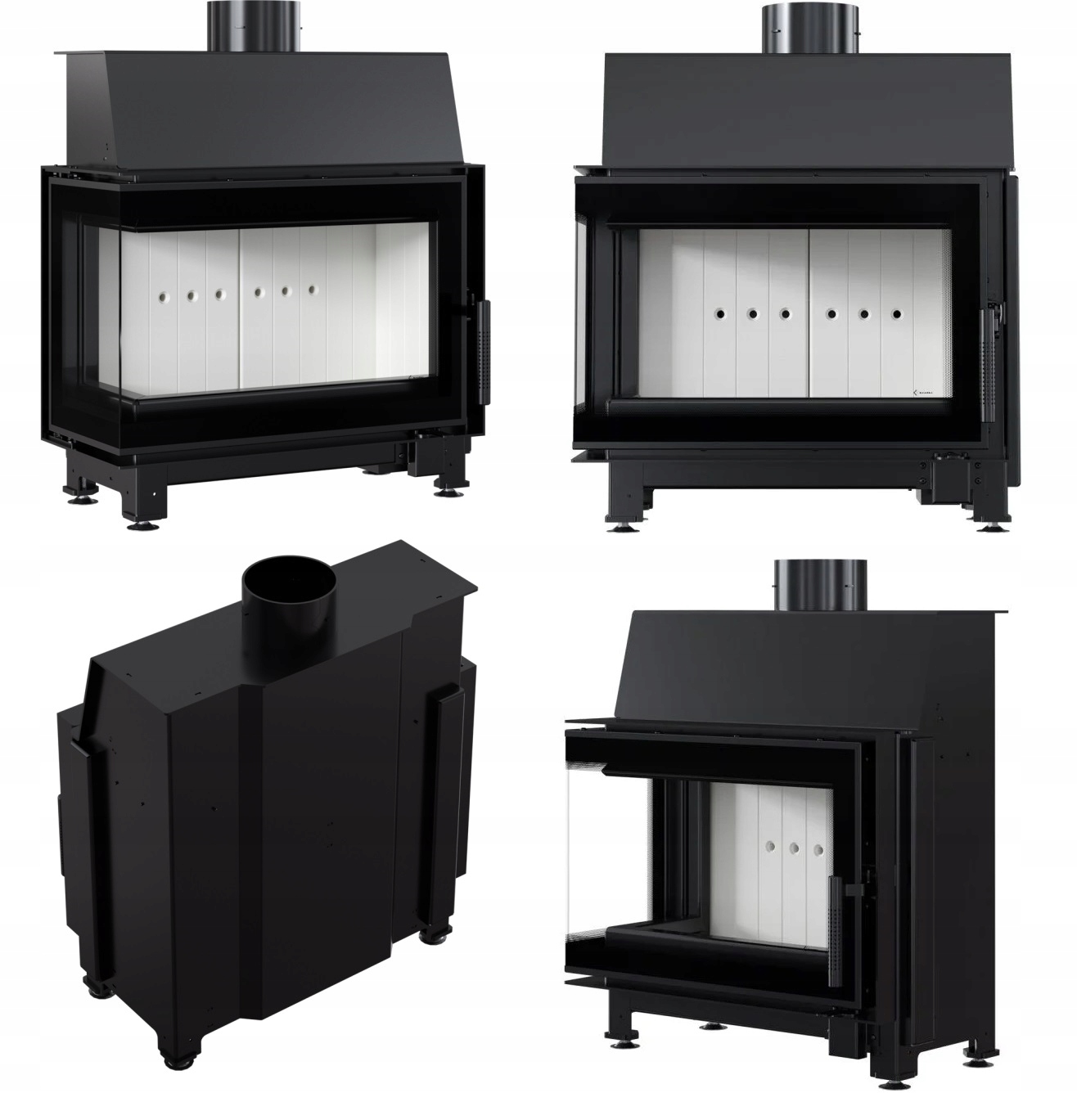 Набір з 3 шт. Камінних решіток типу люфт 45S кутових 600x400x90 для каміна з лівим склом - чорний колір - 2 шт. ВГОРУ та 1 шт. ЗНИЗУ SF