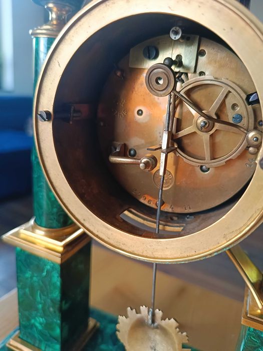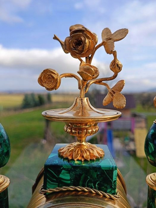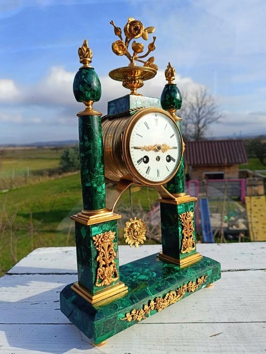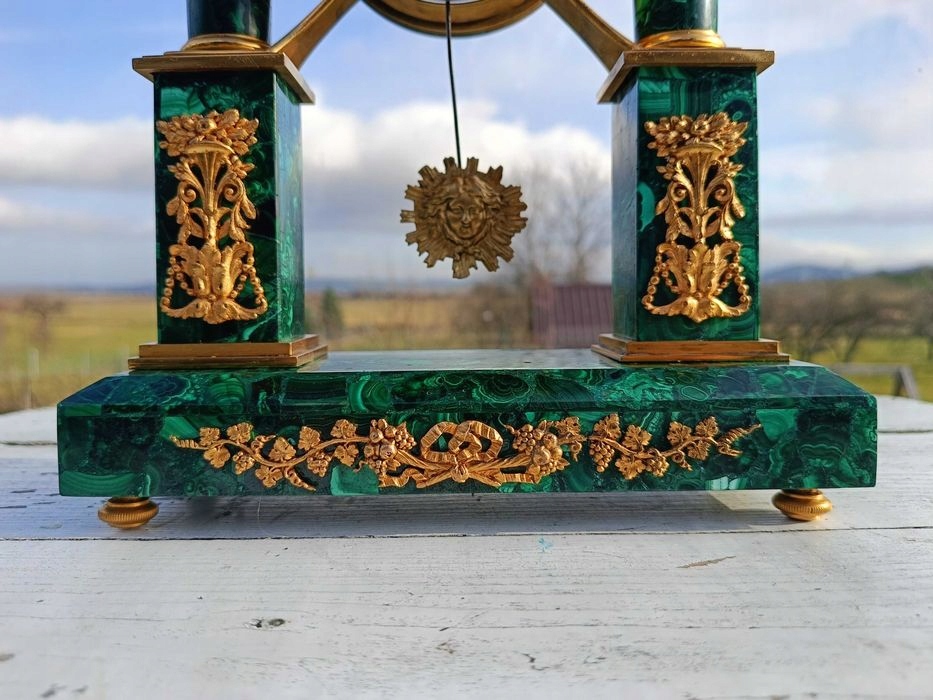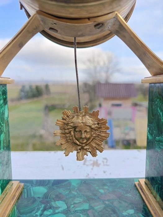 Годинник виготовлено з мармуру, малахіту та позолоченої бронзи.