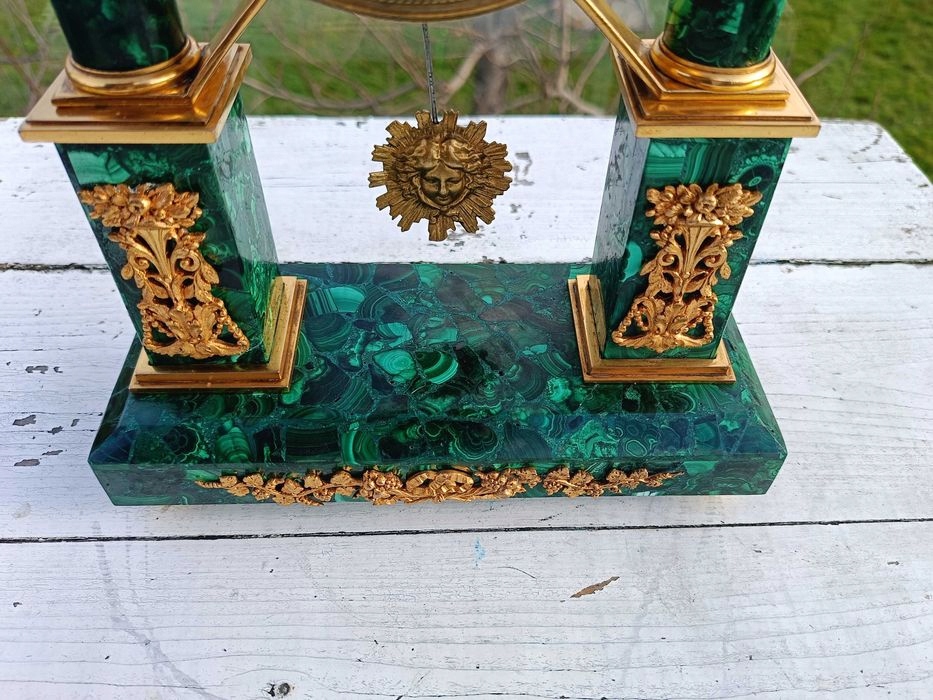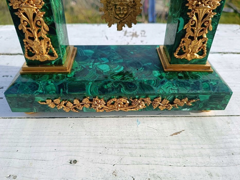 Камінний годинник 19 ст. Франція. Позолочена бронза. ПОРТИК . МАЛАХІТ.