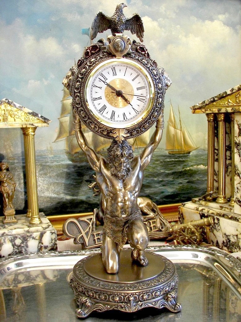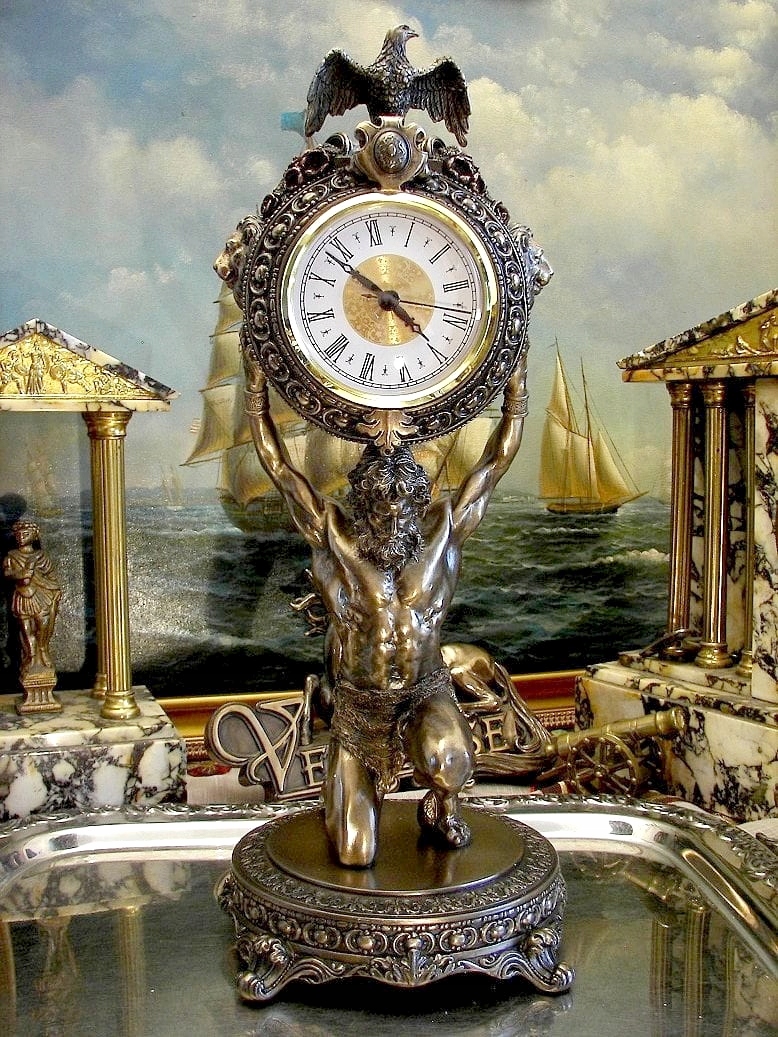 Запрошую придбати чудовий годинник, "вписаний" у фантастичну скульптуру міфологічного Атласу, в стилістиці, що відсилає до класичного модерну. На природі виріб виглядає набагато краще. Бренд Veronese гарантує якість та зовнішній вигляд. Вся річ виготовлена з полірезину, покрита латунню, розписана вручну. Виріб ідеально підійде як кубок, так і приз на змаганнях стронгменів. Прекрасний подарунок на оригінальний подарунок. А присвята неодмінно підвищить її ранг.