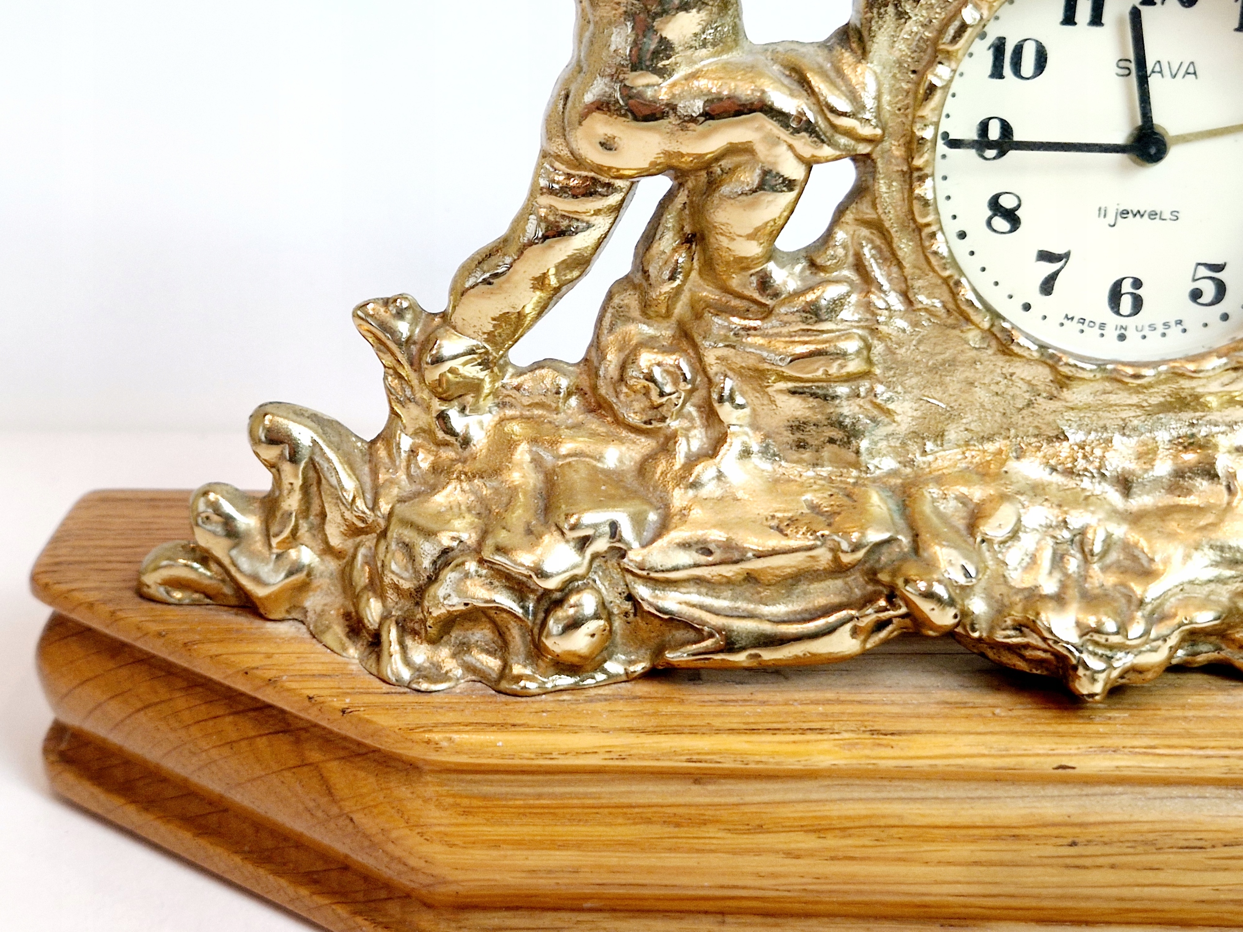 Камінний годинник HCP Poznań 1,51 кг бронзового корпусу на дубову базу 8891