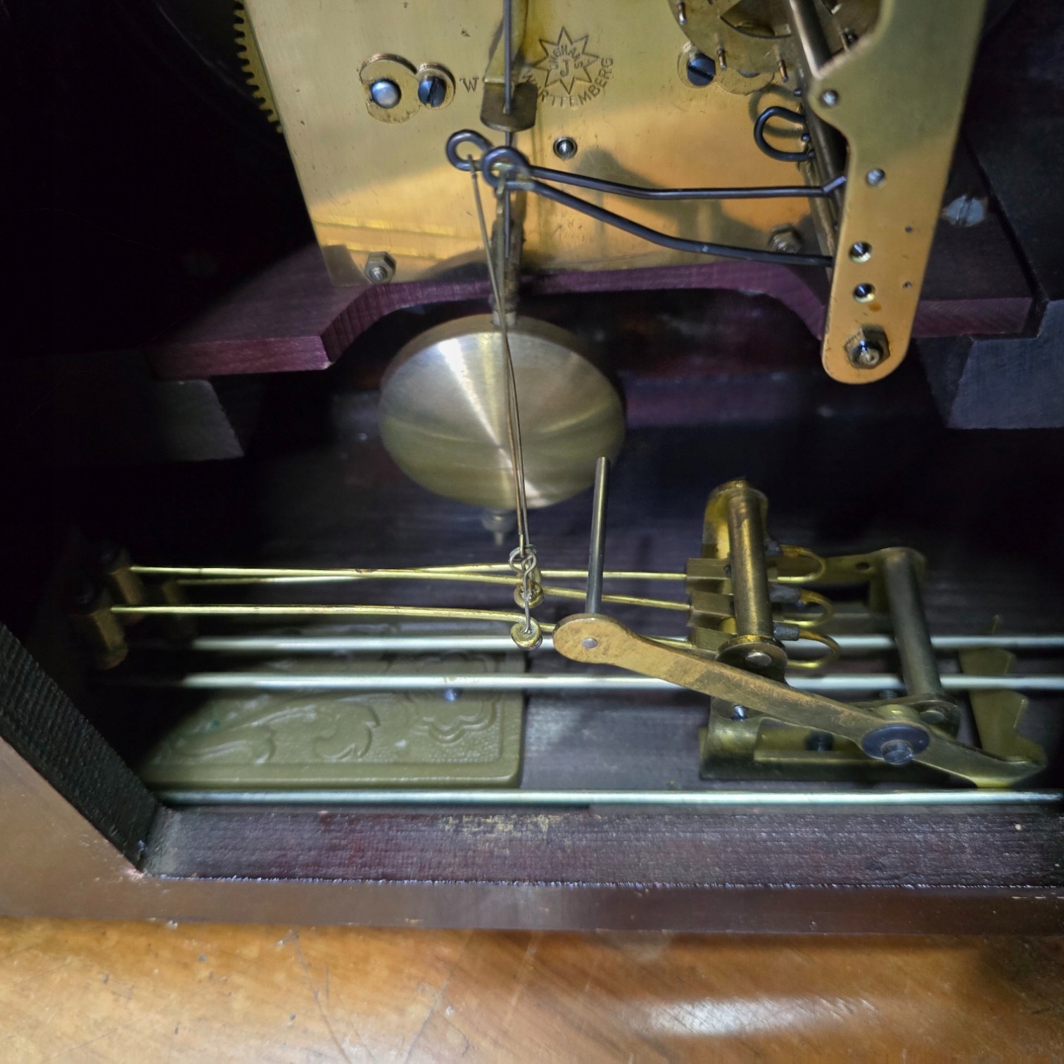 годинник каміна з червоного дерева "Наполеон" з струнним гонгом, виробленим Junghans. Однак функціональний механізм рекомендований очищення, огляд та регулювання в годинниках, одна з струнних струн є вільною для ремонту.