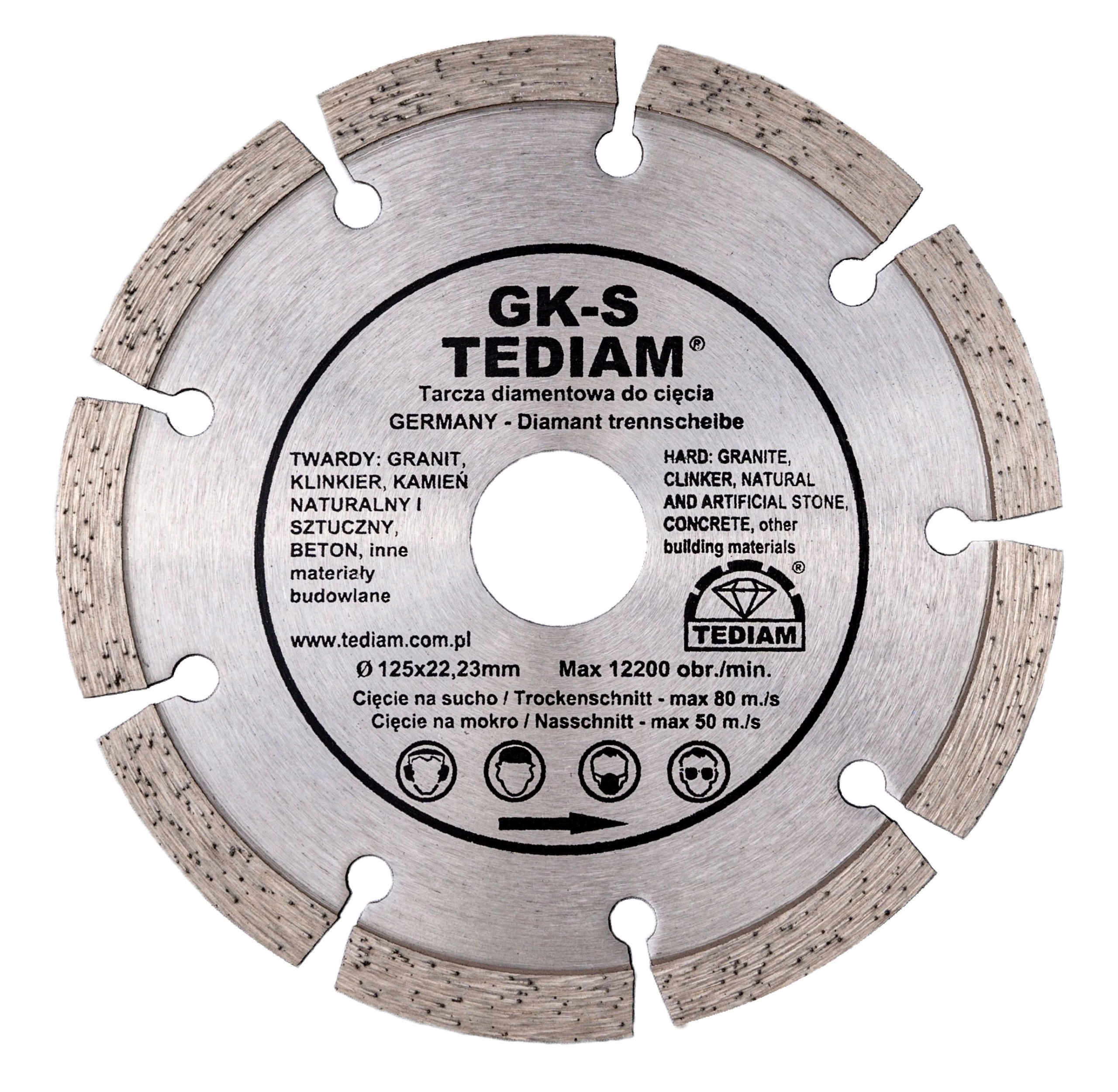 Бренд TEDIAM виріб вирізняється спеченим лазером, обробленим високоякісним алмазним зерном (до 8 мм!). Це подовжує термін служби диска та забезпечує ще більш точне, чисте та швидке різання. Стабільний корпус диска забезпечує оптимальний обертальний рух - це дозволяє досягати високих кутових швидкостей до 80 м/с.