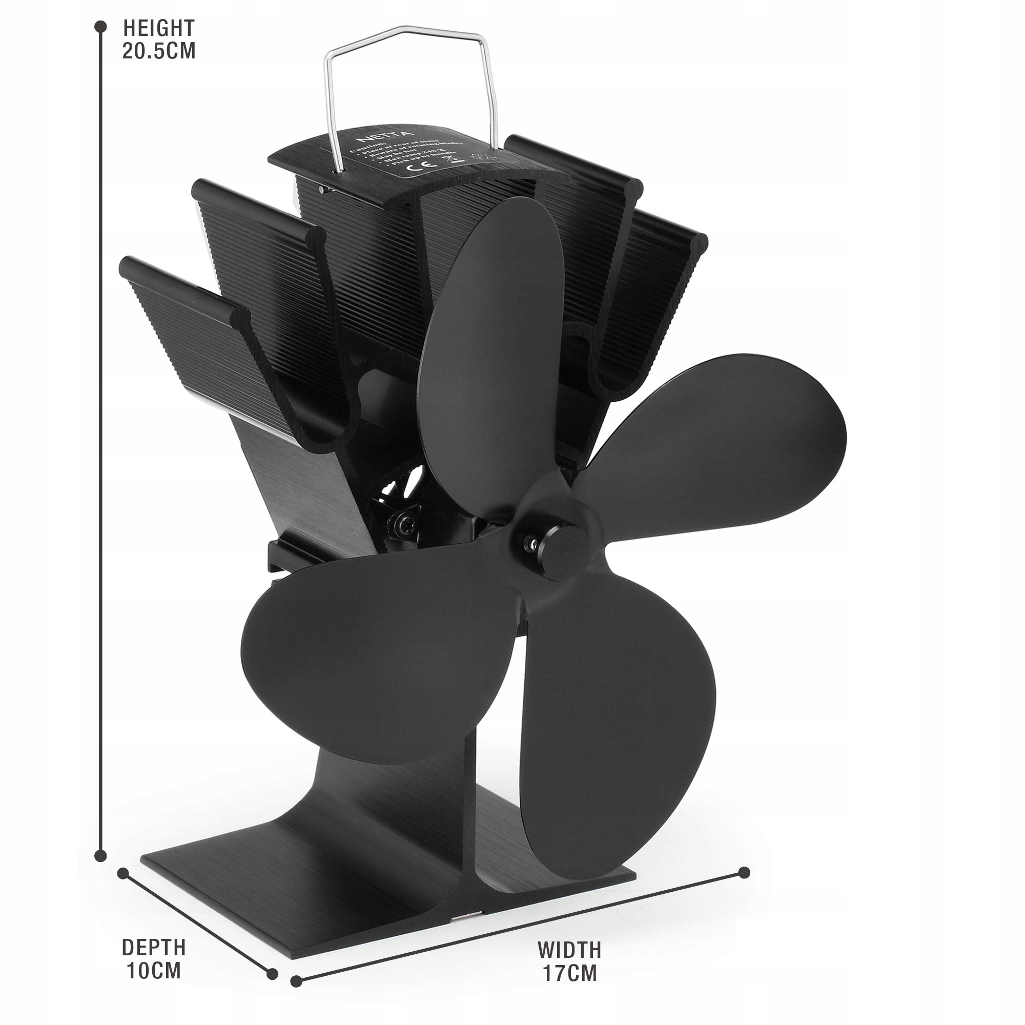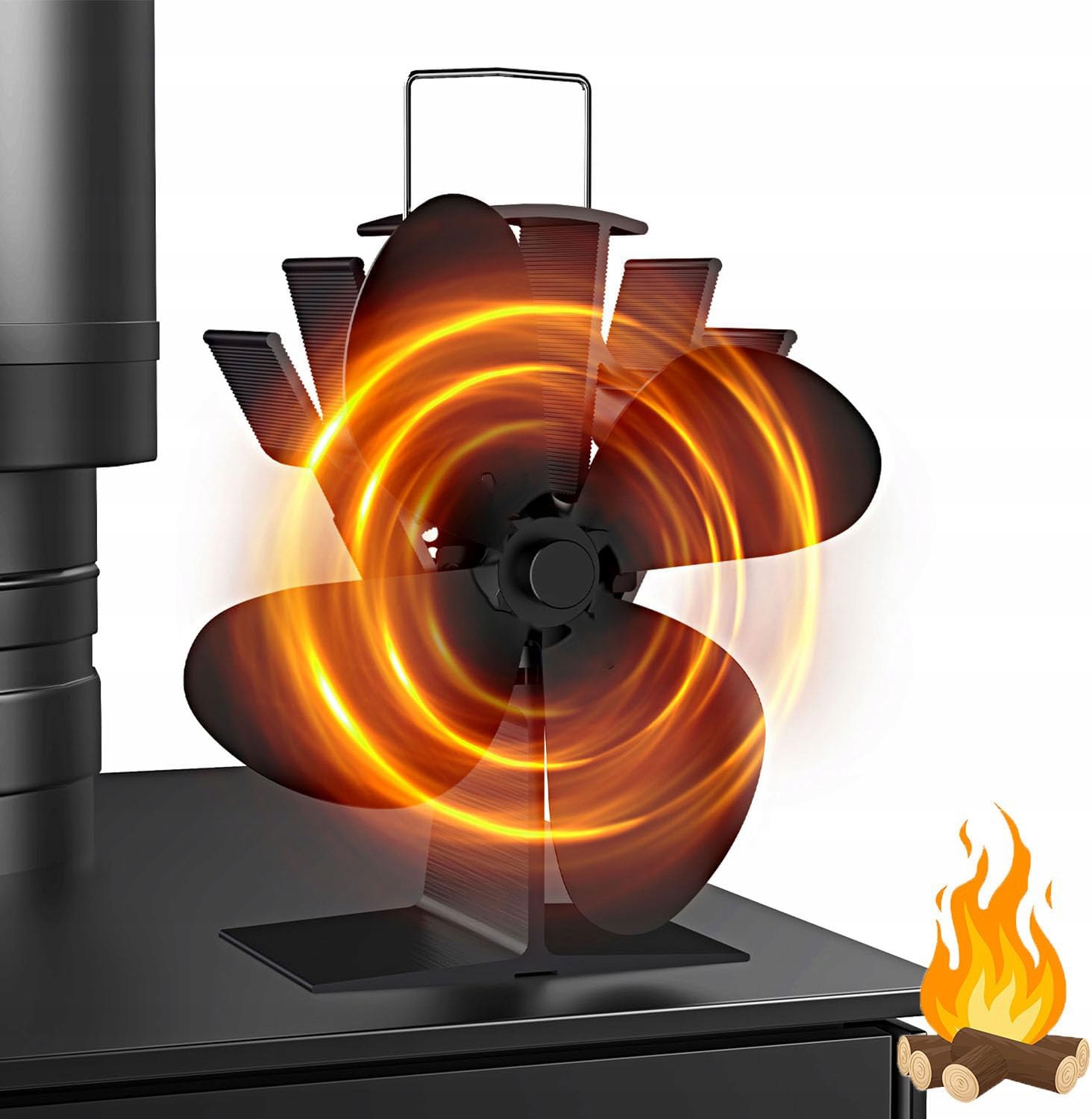 - Підходить для всіх дров’яних печей, камінів тощо з трубами димоходу. Складна установка не потрібна. Просто прикріпіть його до труби димоходу за допомогою залізного кільця, яке входить у комплект, щоб передати тепло від каміна до кожного куточка кімнати.