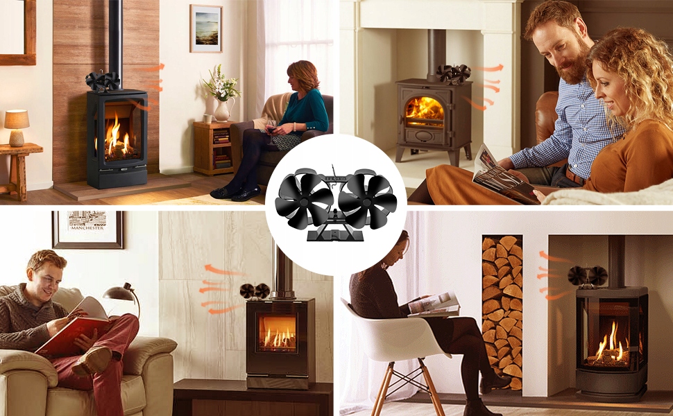 Вентилятор дров’яної печі призначений для циркуляції теплого повітря, яке виробляє дров’яна/вугільна піч чи піч на пелетах, яка працює при нормальній температурі поверхні в діапазоні 50–350 °C.