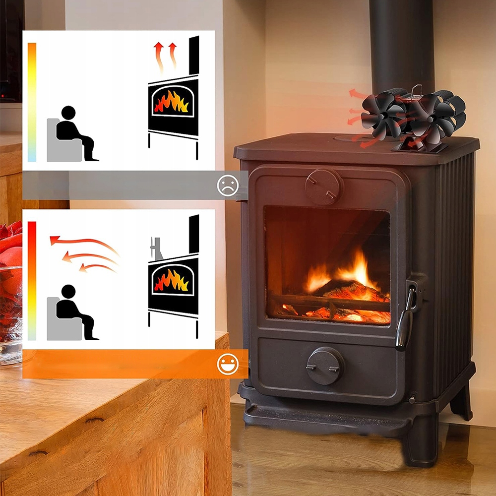 🔥【Ефективний розподіл тепла】: 12-лопатевий вентилятор на дровах забезпечує на 50% більшециркуляцію, ніж стандартний вентилятор із 4 лопатями.